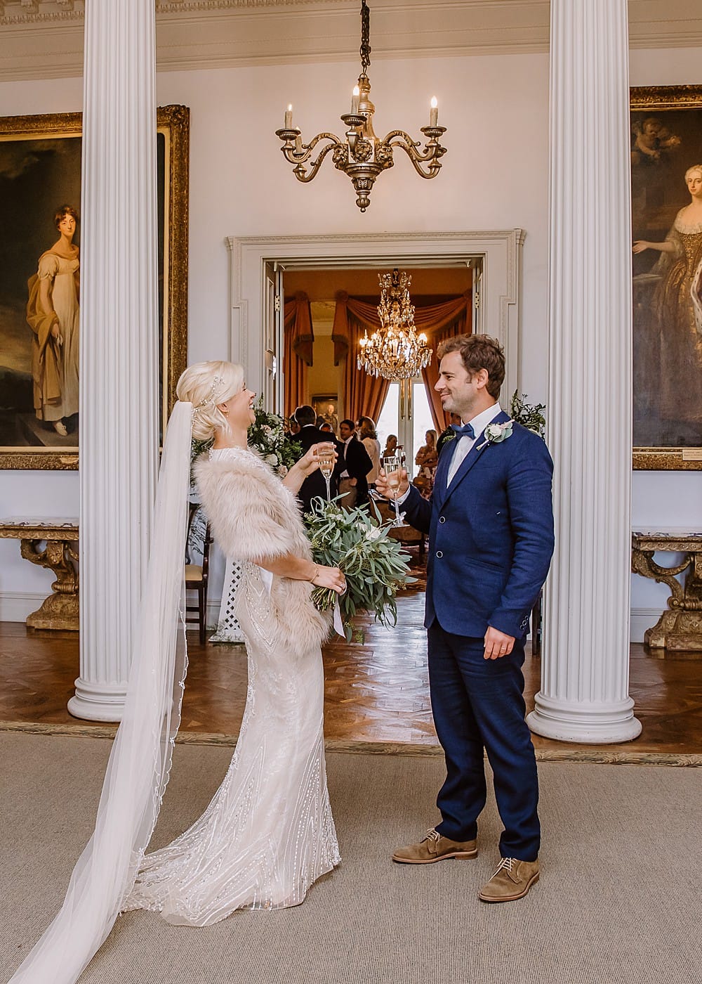The venue’s classical Italian-style, west-facing main entrance serves as a striking backdrop for photographs and is an ideal spot to toast the occasion as the sun sets over the estate’s cricket pitch.