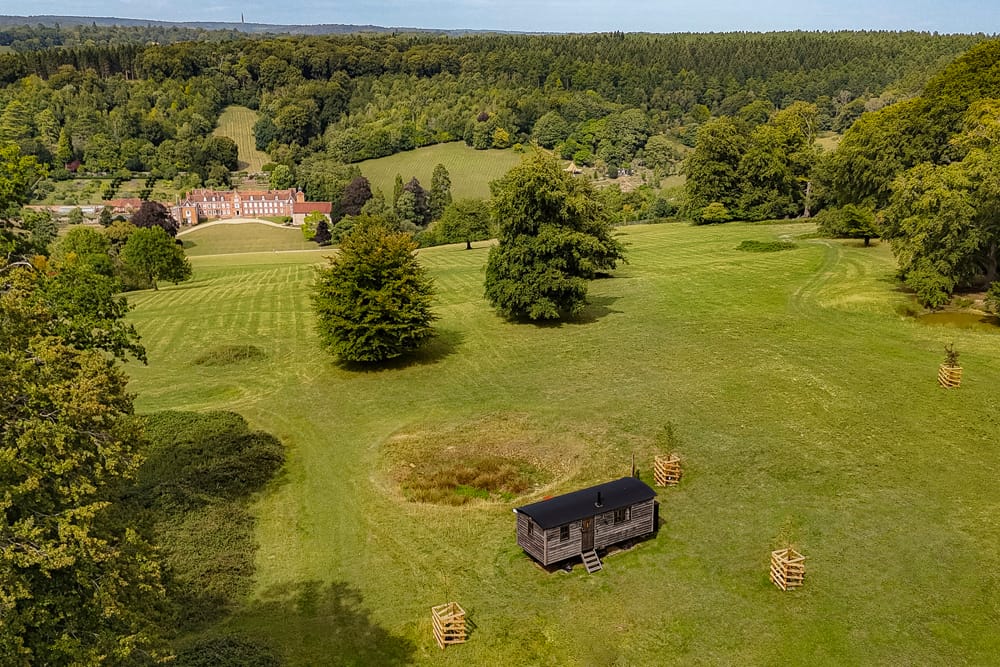 Drovers’ Hill is also home to two hand-built shepherds’ huts, offering on-site accommodation for the couple or selected guests. Positioned at the end of Drovers Lane, they provide privacy and immediate access to the surrounding landscape.