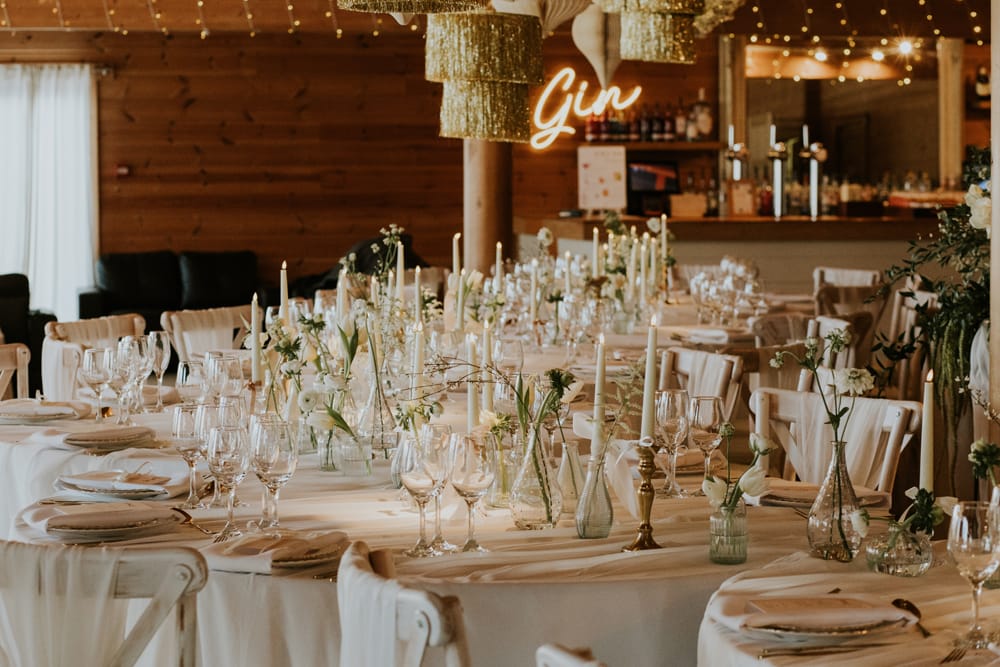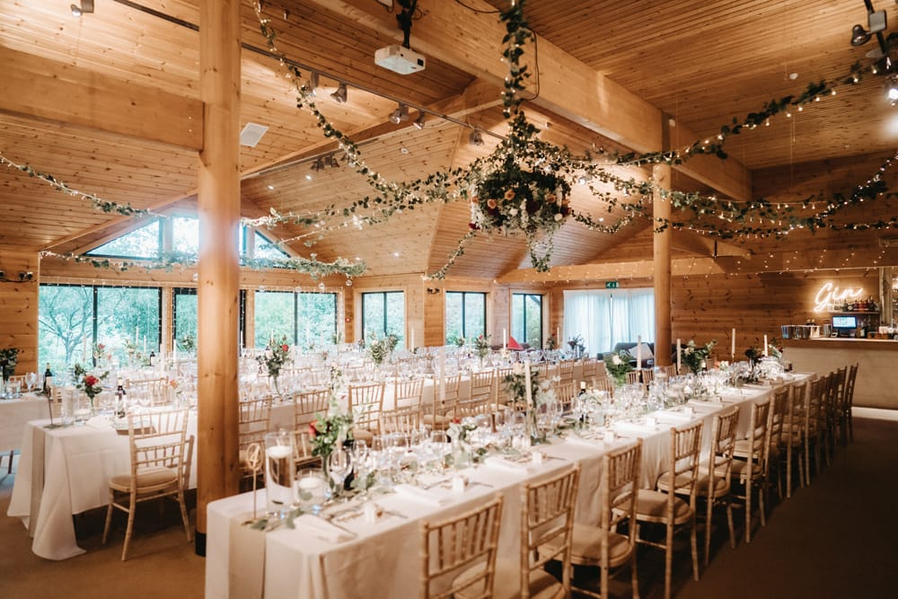 A family-run venue offering a relaxed atmosphere, ideal for couples seeking a wedding with flexibility and personal style. The open-plan Lodge features high ceilings and expansive windows, filling the space with natural light and providing views across the course. The surrounding gardens offer a peaceful setting for guests to explore.