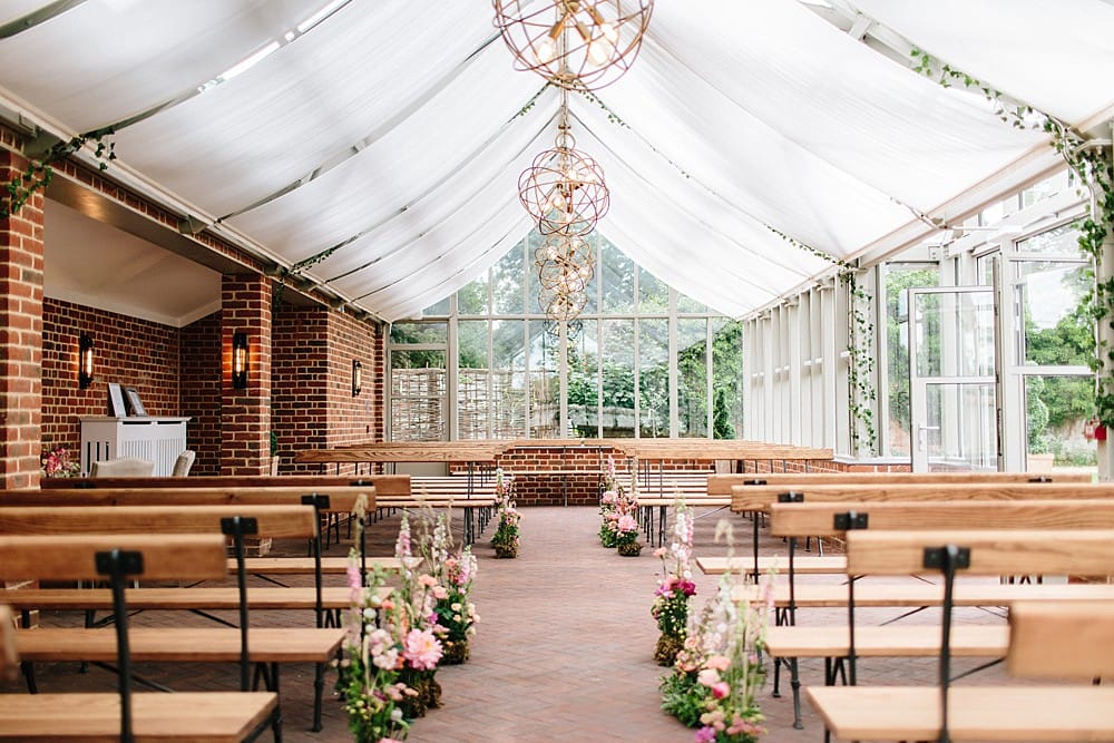 Begin your day in The Billiard Room, a light, airy space perfect for getting ready and soaking up the excitement. When the moment arrives, take a garden stroll to The Glasshouse, where floor-to-ceiling windows frame views of nature in bloom. Whether it’s summer flowers or wintry sparkle, this one-of-a-kind space is made for heartfelt vows and unforgettable photos.
