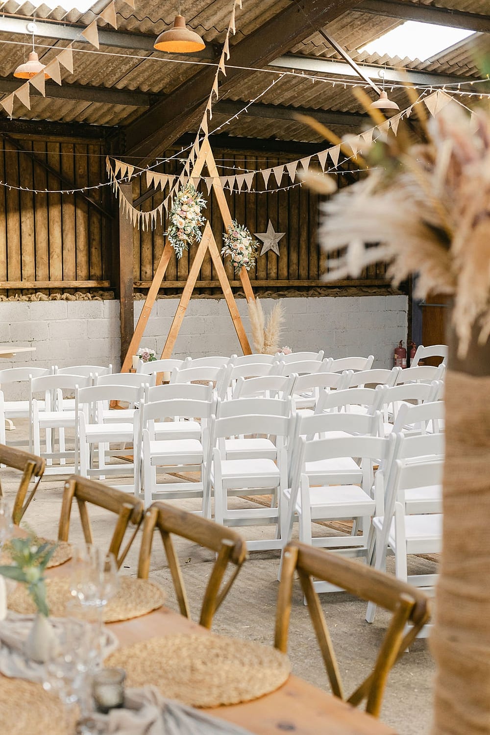 There’s something pretty special about arriving at your ceremony on a vintage tractor or walking the winding path through the sand. Either way, you’ll reach a quiet spot by the sea that takes your breath a little. Later on, guests gather back at the farm for drinks on the verandah, while the rest of the evening unfolds just a few steps away in the barn.