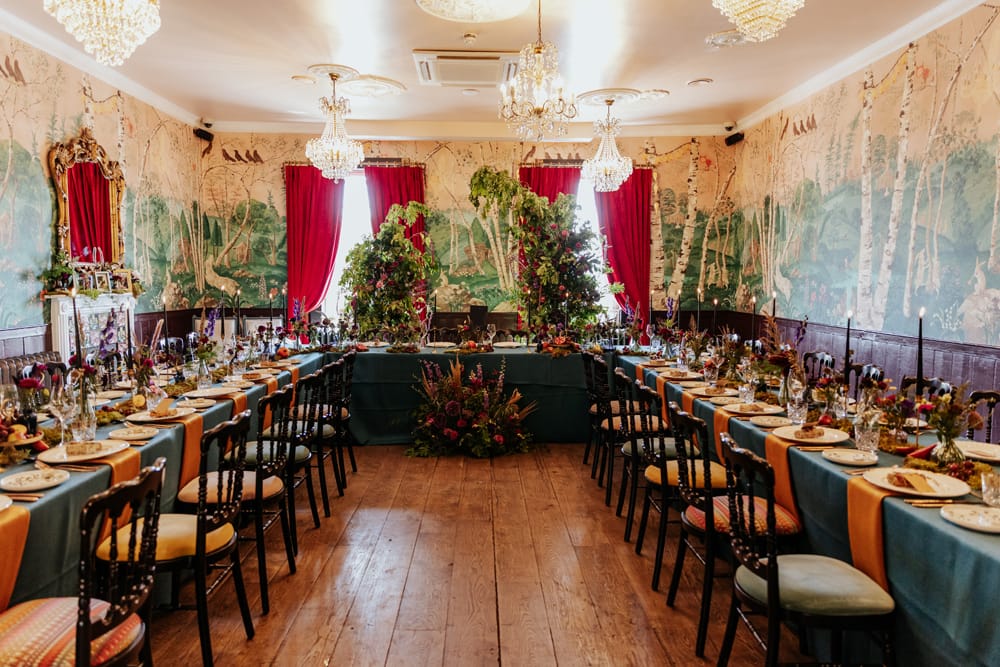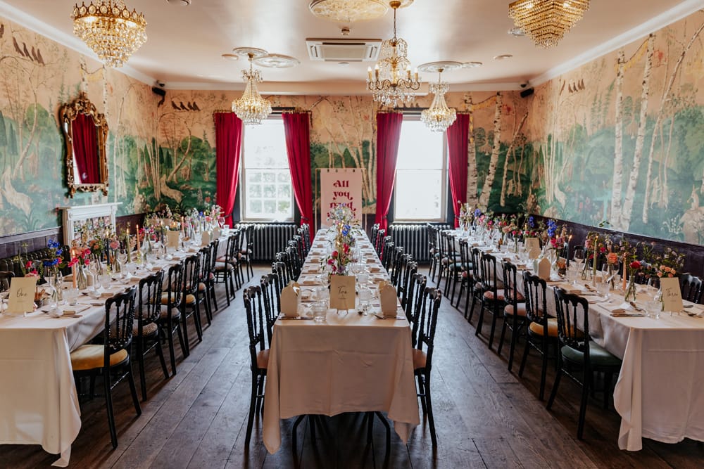 Downstairs in the historic Stables, you can celebrate your nuptials with your very own Red Carpet Walk, rolled out just for you along the exceptionally long wooden table. Enjoy drinks and canapes from your personal bar. Under our beautiful pink neon, ‘I will always love you my friend’ is the perfect place for speeches, offering a more informal approach to the tradition. You and your guests can gather around the beautiful garden in good weather!