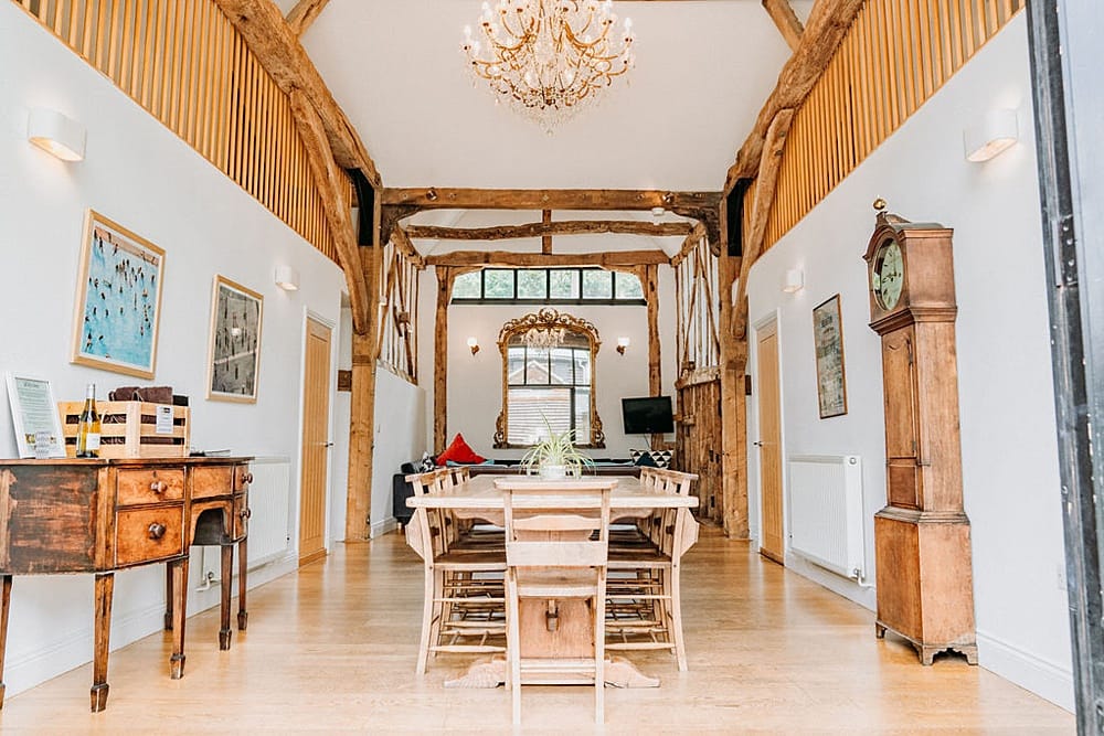The venue’s stylish, self-catering barns offer comfortable lodging just a short stroll from the main event area, with space for up to 30 guests. Additional amenities include a gym, spa, beauty treatment rooms, and even a friendly group of resident goats.