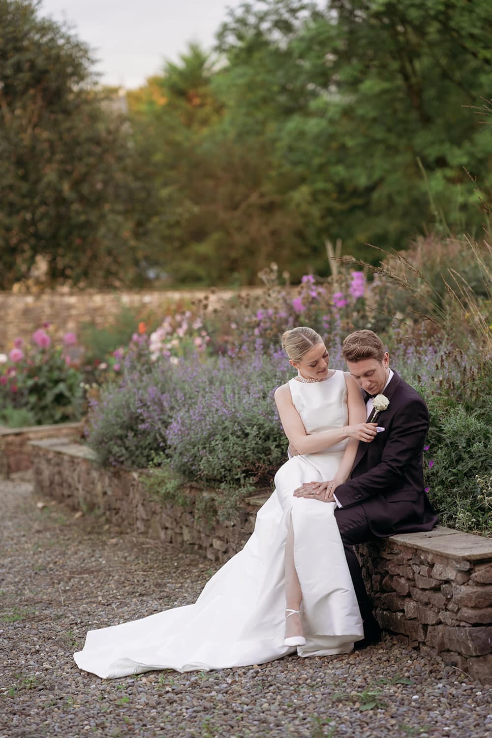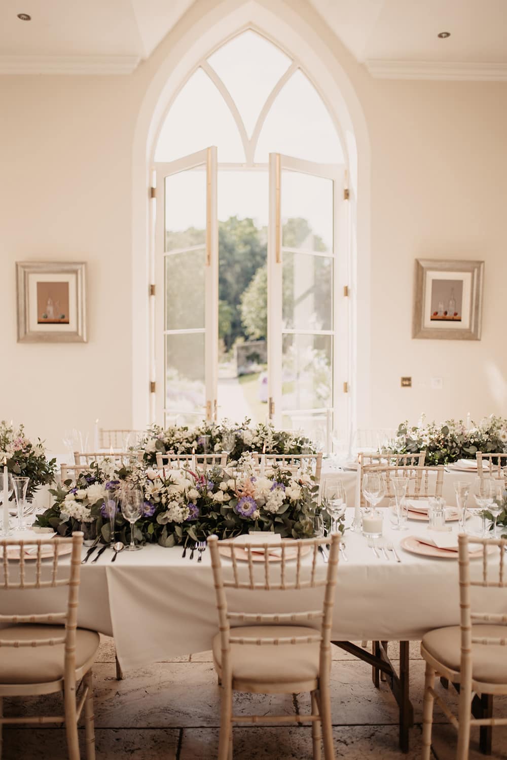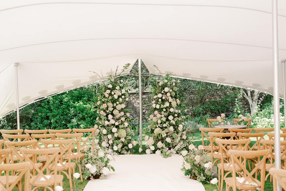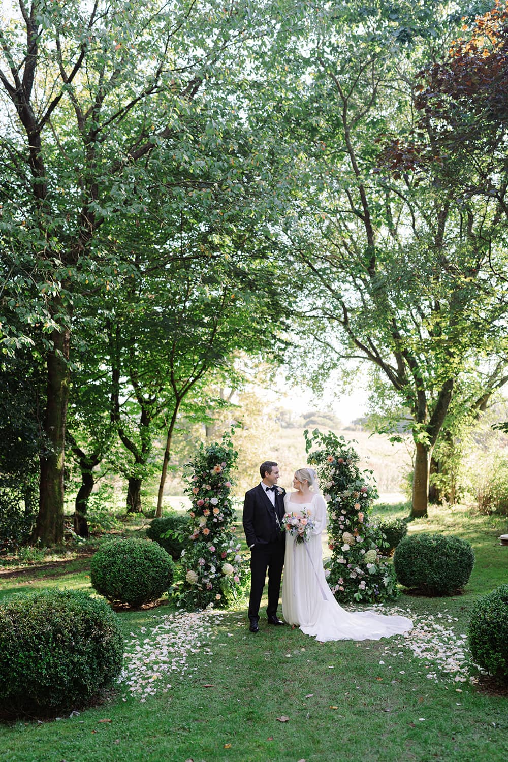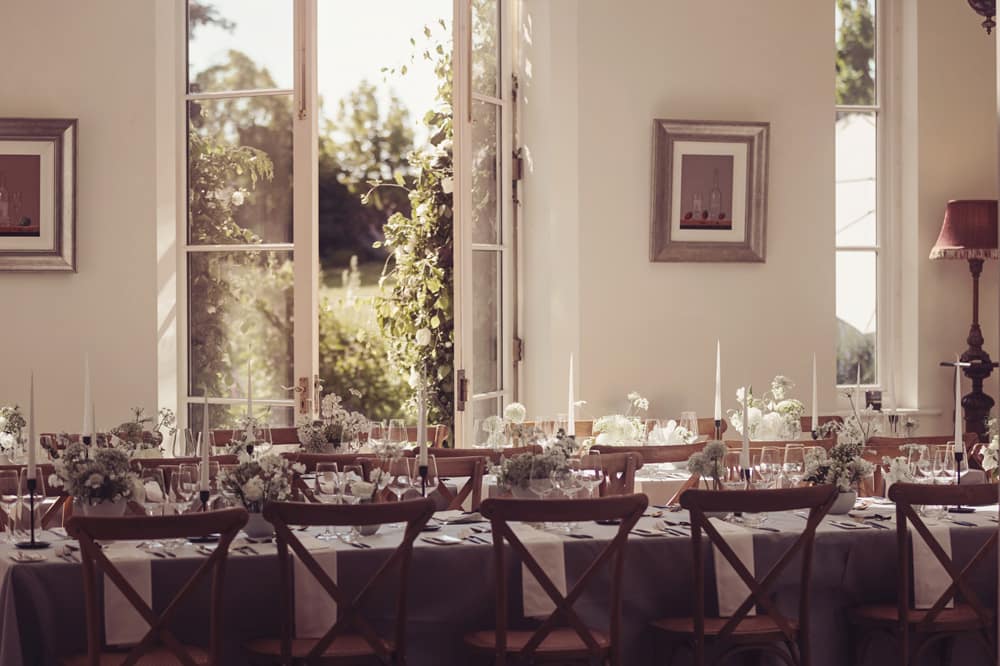 We got married outside on the terrace, with the most beautiful aisle through the garden. It all felt so natural and intimate – just perfect! Then we had our drinks reception surrounded by flowers in the walled garden, followed by dinner in the wonderfully light & bright dining room (catered by Foray – absolute superstars, recommended by Anneka). We then danced the night away in the orangery. It was a perfect day, within a perfect weekend.