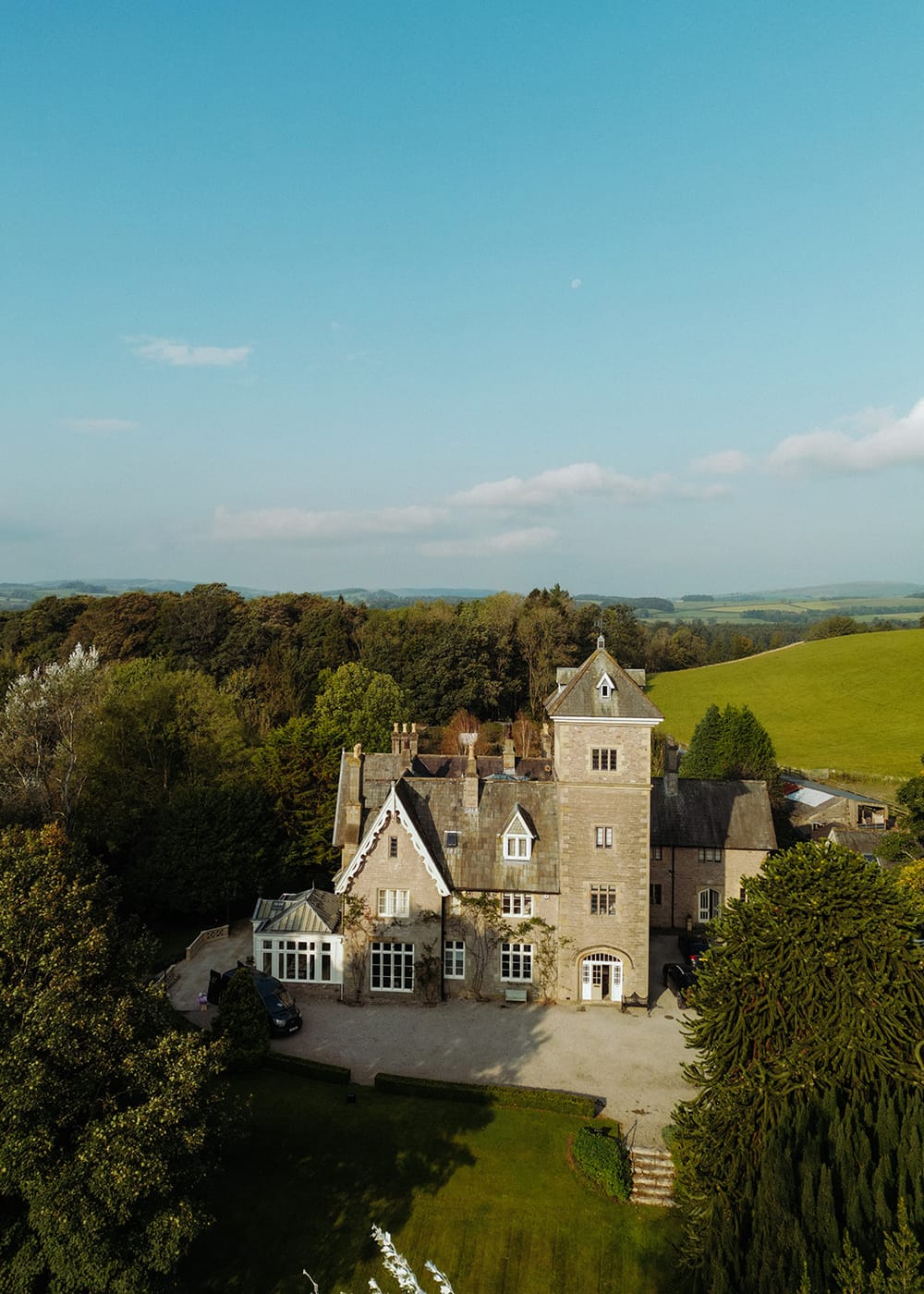 The estate’s facilities are perfect for hosting unforgettable receptions. Guests can enjoy grand interconnecting reception rooms, a billiards room with a full-size snooker table and bar, and Sonos speakers throughout. The extensive grounds provide several options for marquee or tipi setups.