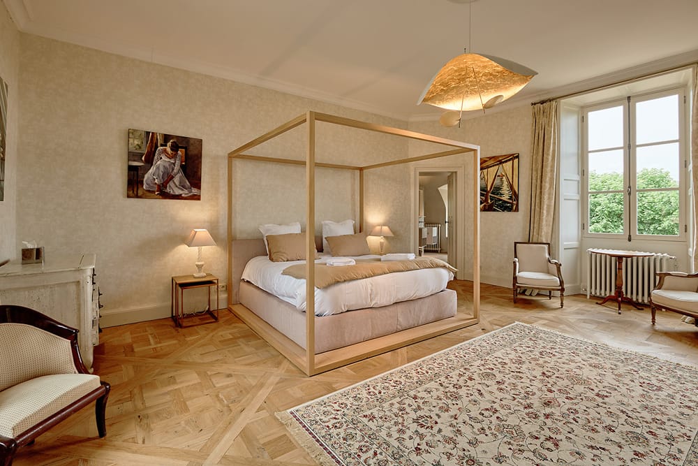 Up to 45 guests can be housed on site, either in the main château itself – with both round and square majestic towers – or in one of the two beautifully restored cottages. Breakfast is included. Each piece of accommodation has its own facilities, gardens and swimming pool.