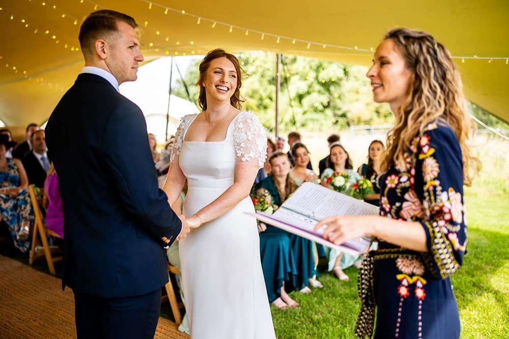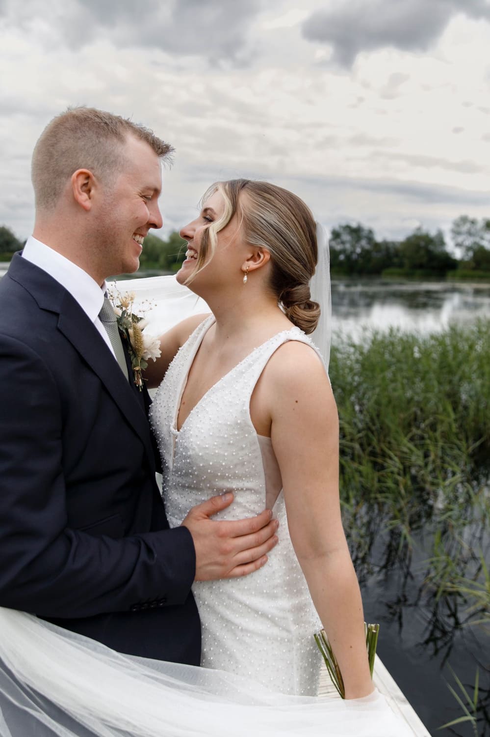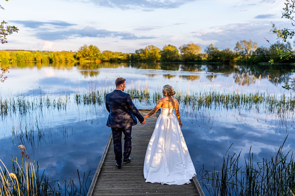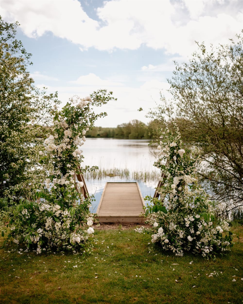 The Lakeside is not licensed for legal ceremonies, but couples can exchange vows in a setting of their choice, whether lakeside or within their selected structure. The venue connects couples with experienced celebrants who can create a unique and personal ceremony. There are no restrictions on music, readings, or personal touches, including pets or drinks! The venue’s team will arrange seating, manage music, and coordinate with the celebrant to ensure a smooth processional entrance. There is no additional charge for holding a ceremony at The Lakeside.