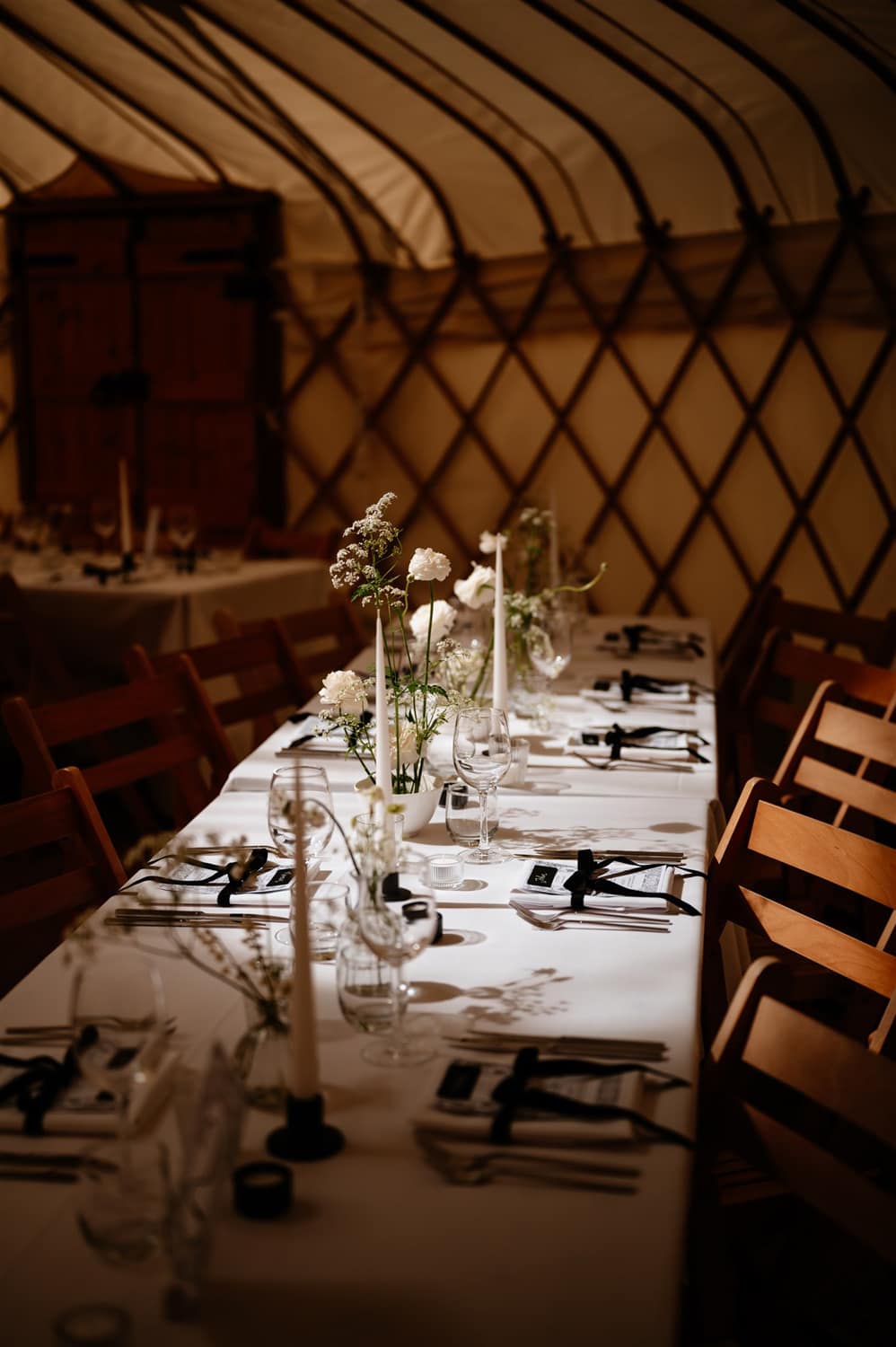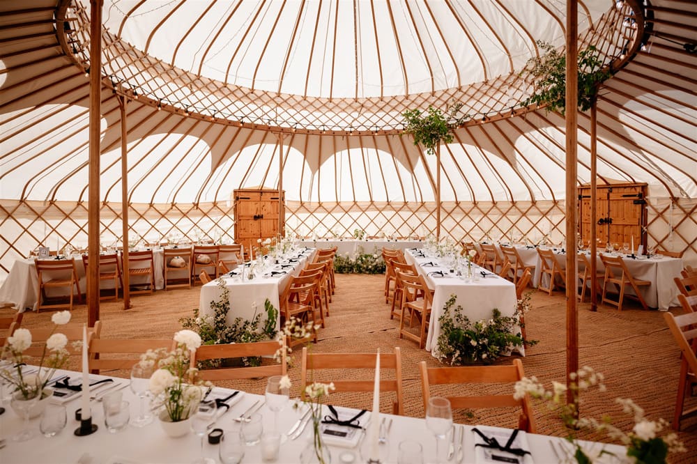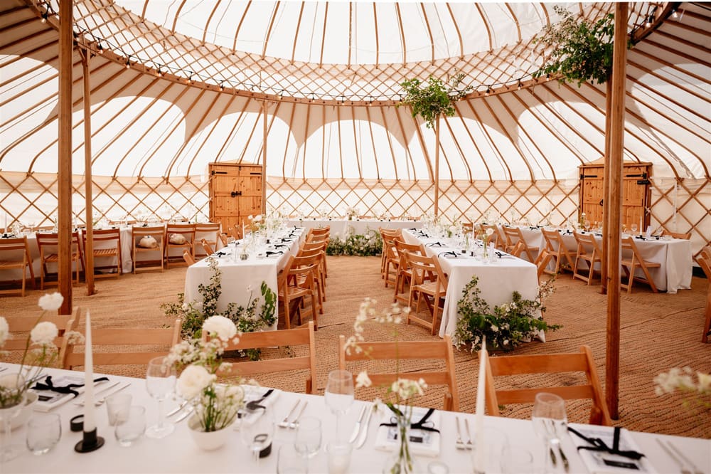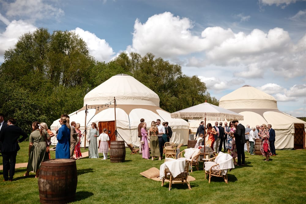 Following the ceremony, guests can enjoy an alfresco drinks reception overlooking the lake or within a chosen structure. The front-of-house team will circulate drinks and canapés as guests explore the wildflower meadows and lakeside jetty. Lounge seating and shaded structures can be arranged for your guest’s comfort, and there is ample space for entertainment.
