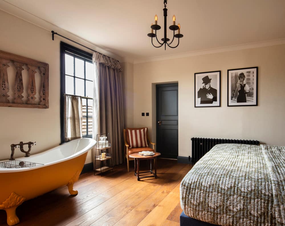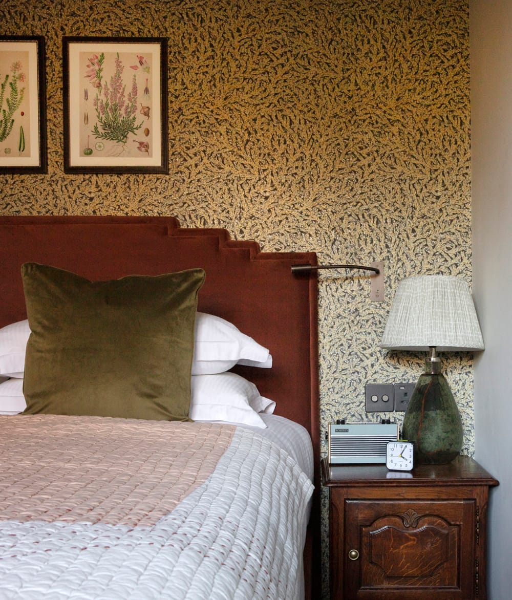 The Leicester Arms has 11 boutique-style rooms that accommodate up to 24 guests. Each room blends historic charm with modern comfort, featuring luxurious bedding, Nespresso machines, and Bramley toiletries.