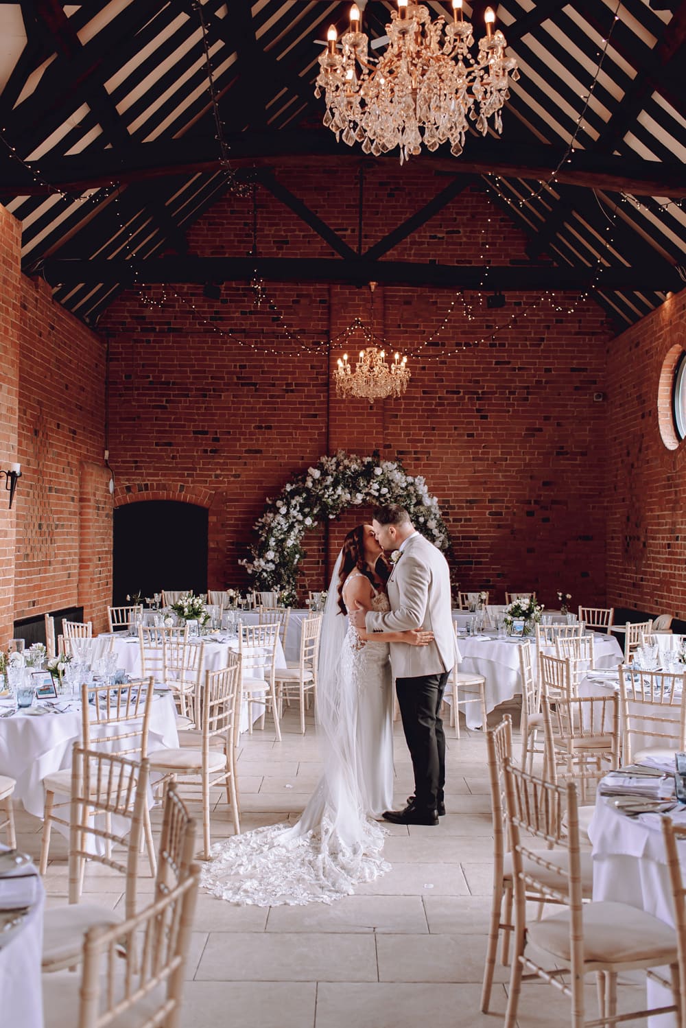 After the ceremony, the barn welcomes up to 100 guests for the wedding breakfast and expands to host up to 150 for the evening’s festivities. The warm timber structure and sweeping views create a sense of intimacy while allowing for space to dance, dine, and engage in quiet conversation.