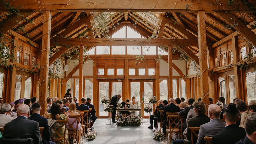 Couples can exchange vows in one of three licensed spaces: The Ladybird Room, the Acorn Room, or the Outdoor Pavilion. Each offers a distinct feel, from intimate to grand, so you can choose a setting that matches your day.