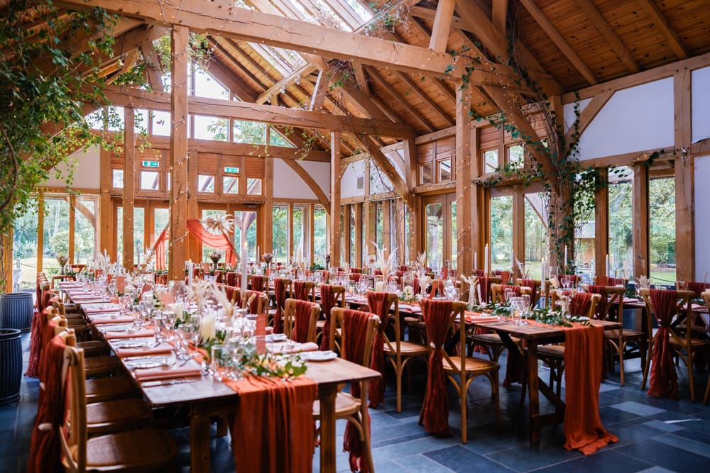 The Oak Tree of Peover sits quietly in the heart of the Cheshire countryside, surrounded by 30 acres of gardens, woodlands, and meadows. It’s a place where time seems to slow down, peaceful and full of natural charm. The oak-framed design gives the venue a warm, welcoming feel, blending rustic character with modern touches.