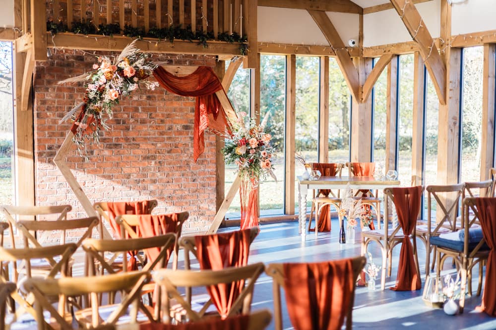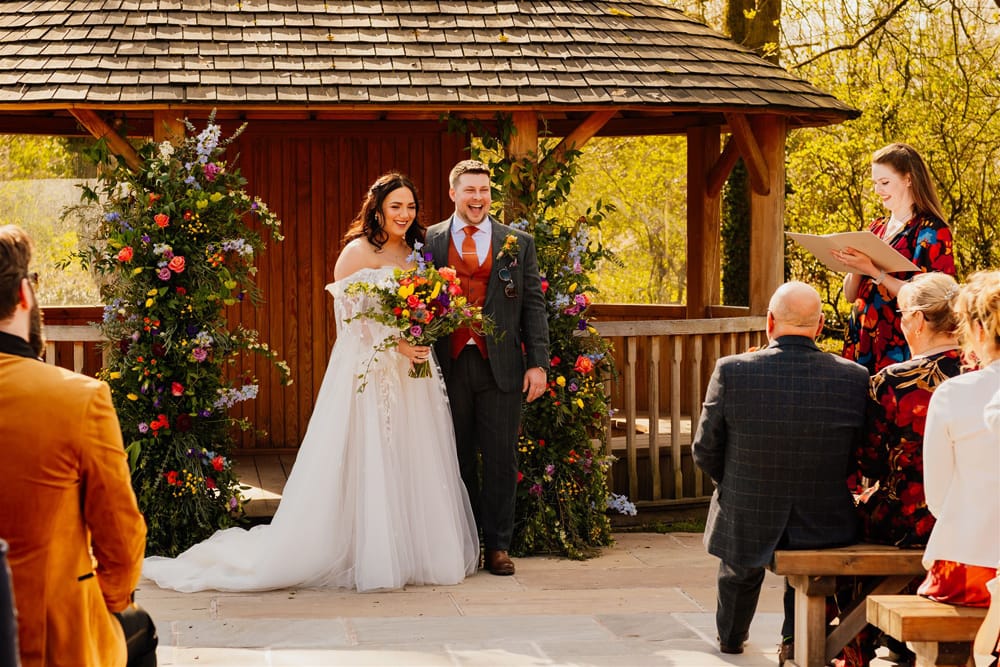 The venue was perfect for our laid-back day. We used both getting-ready rooms, which were great. We got married outside, which was stunning, and we had our wedding breakfast and reception in the Acorn Room. We chose the oak tree because we were a small wedding (40) day guests and 80 evening and it was perfect because the venue is big enough to cater for more, but we didn’t look lost in the room. The venue and grounds are absolutely beautiful, and we could not be happier with our choice to get married here. All our guests have commented on how stunning it was, and we all had a great day. Everyone loved being outside. The fire pits are a great extra touch