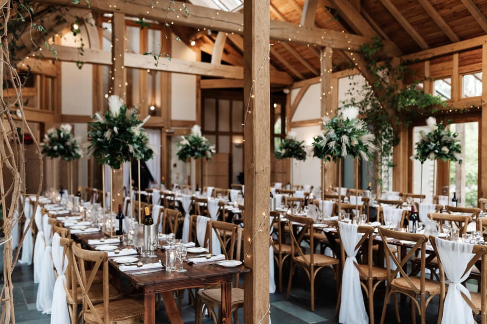 Whichever space you choose, the décor remains understated and in tune with the surrounding countryside. Fairy lights, greenery, and simple floral details bring a sense of quiet beauty without distraction.