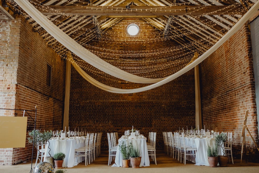 The Octagon Barn is located on a historic site in the picturesque Norfolk countryside, offering an enchanting backdrop for any wedding celebration. This 300-year-old barn, with its high ceilings, original North American Pitch Pine beams from 1693, and charming old brick walls, creates a timeless and versatile space. Inside, the venue is heated, and a canopy of fairy lights adds a soft, magical glow, perfect for setting the mood.