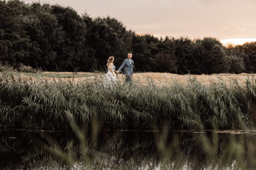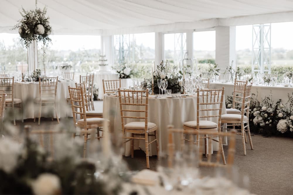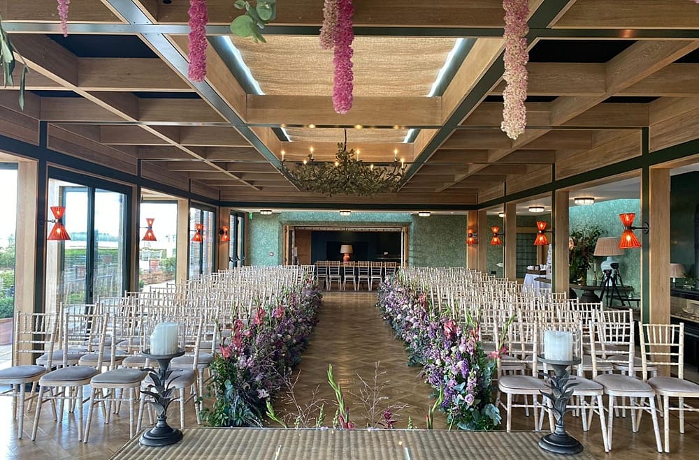 With incredible indoor and outdoor spaces, you’re guaranteed your perfect ceremony, whatever the weather. Their handcrafted and ornate outdoor pavilion overlooks the lakes and gardens, with Ely Cathedral on the horizon. Their inside ceremony space, The Orangery, is beautiful every season and features floor-to-ceiling glass, which can all be opened to unveil a stunning inside-outside space.