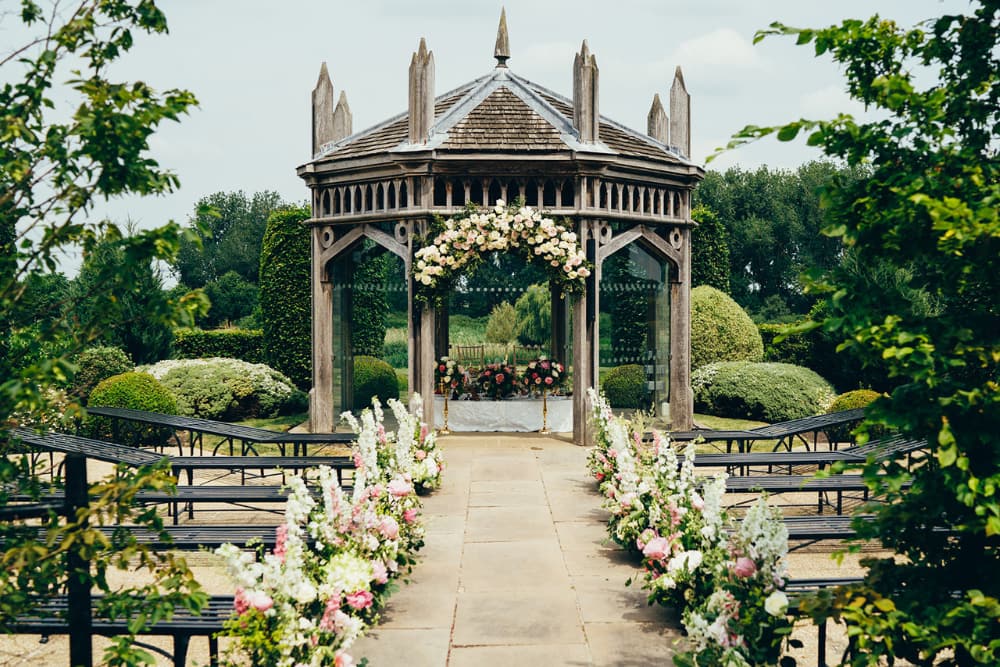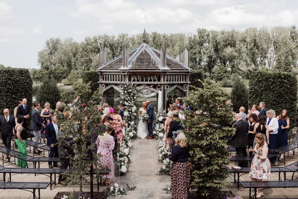Our views of Ely Cathedral as a wedding venue are unique and genuinely capture that fairytale dream for our couples. Our garden pavilion is based on the structure of the Cathedral and is a one-of-a-kind ceremony space. Overlooking our stunning environment, this area is the perfect place to say your vows.