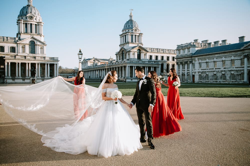 The men arrived in style by boat which got some amazing photos! I truly felt like a princess waking down the aisle in the Painted Hall it was everything I had ever dreamed of. We were lucky with weather and were able to have our drinks reception on the colonnades which was lovely! Having the after party in the Undercroft meant that our guests were able to see a lot of the venue and history of the building! My friends and family were blown away with the venue and the level of professionalism and friendliness of the team. They made every single person feel special! I cannot thank the team enough for making our wedding day one we will never forget. I can now say I got married in the Sistine Chapel of the UK!!