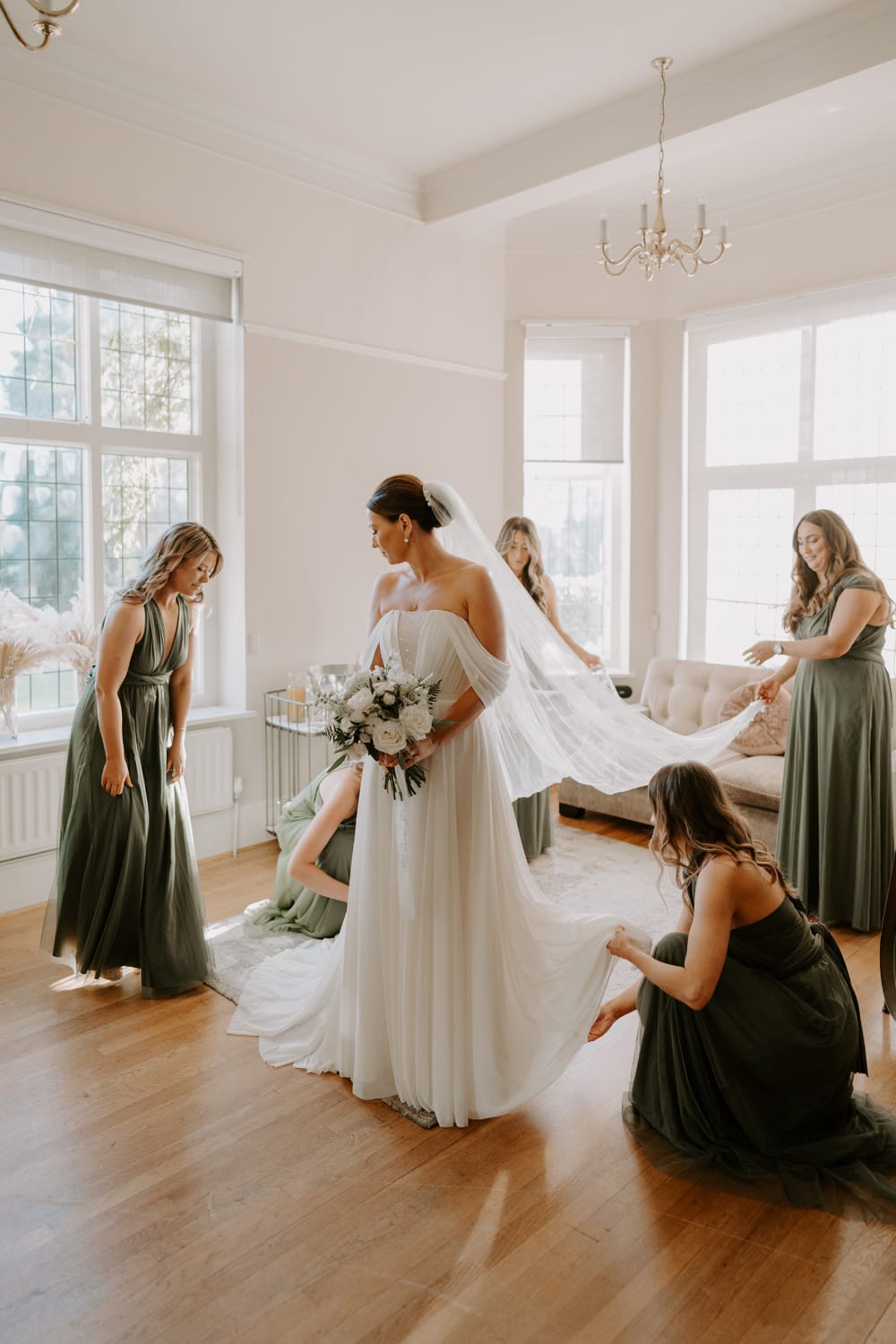 We have our Dressing Room available from 7am the morning of your wedding, which you are welcome to use. Alternatively, you can book a room at one of our hotels the night before and then get ready there.