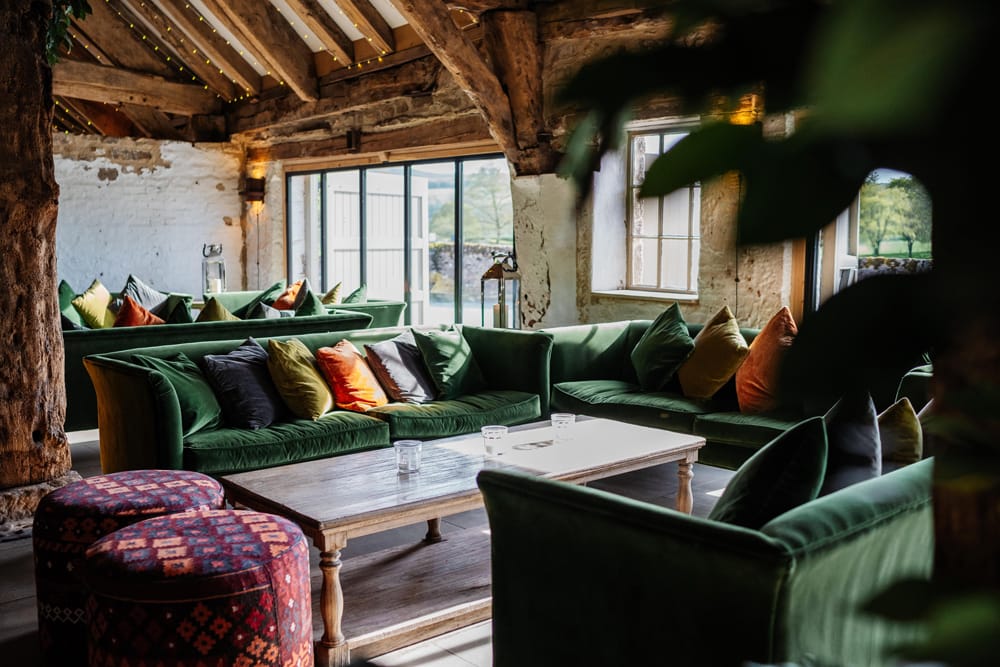 Ceremonies take place in the main barn. The terrace has views across the Bolton Abbey Priory ruins and the surrounding landscape. It has large fire pits and plenty of seating so that guests can enjoy the spectacular view during post-ceremony drinks.