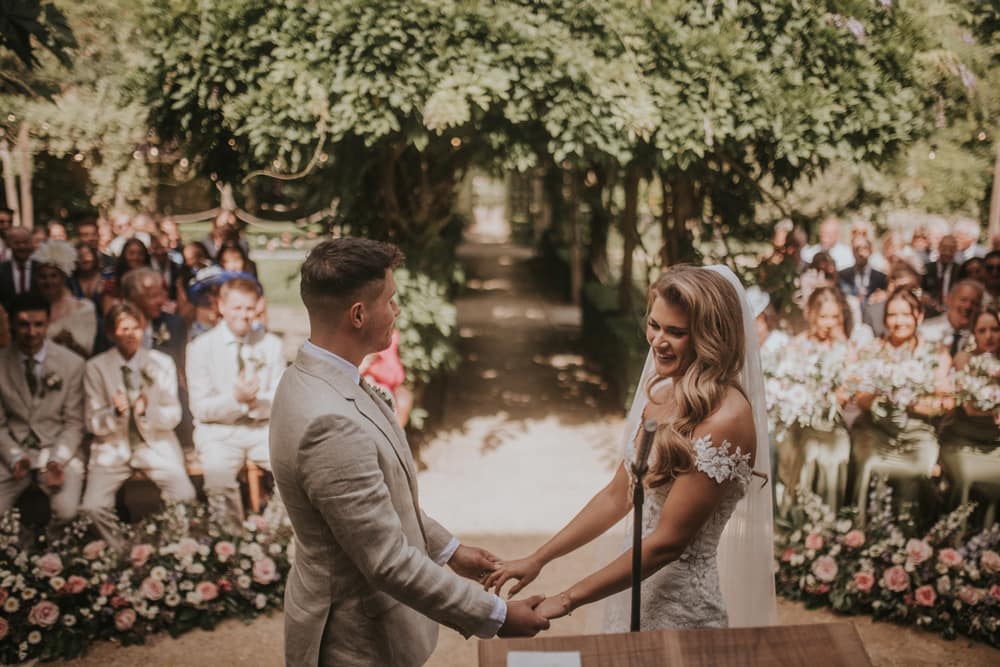 I must have emailed every single barn venue in Oxfordshire, Gloucestershire and Wiltshire. We wanted a barn wedding with extra wow. What really sold us Tythe are all the extra bits – the courtyard, all the hidden nooks where people can sit, the giant lawn at the front, all those different spaces for guests to enjoy. It’s so private but also very accessible.