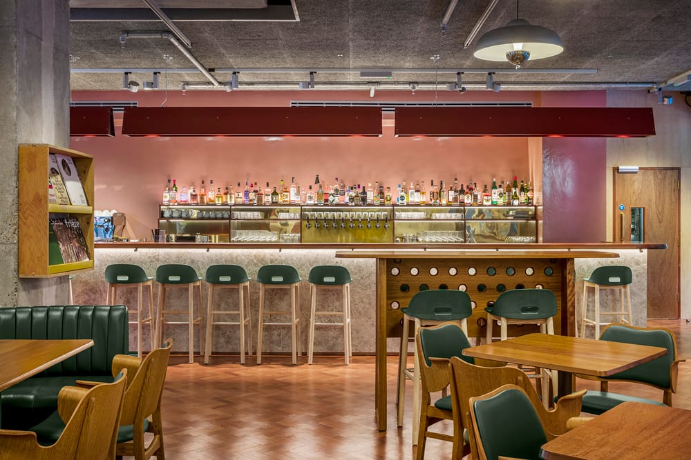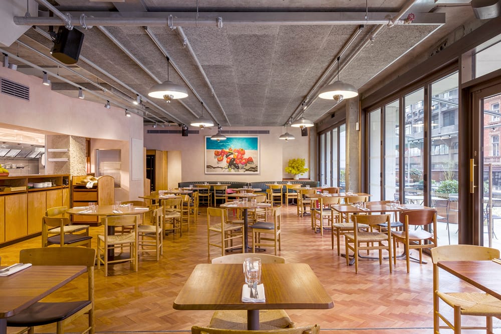 Toklas is a unique venue located at 180 The Strand. It features Brutalist architecture with distinctive design accents, such as a vintage parquet floor, iroko tabletops, and Børge Mogensen chairs. The property includes an expansive garden terrace, a bar, a private room, and a bakery, providing a versatile event space.