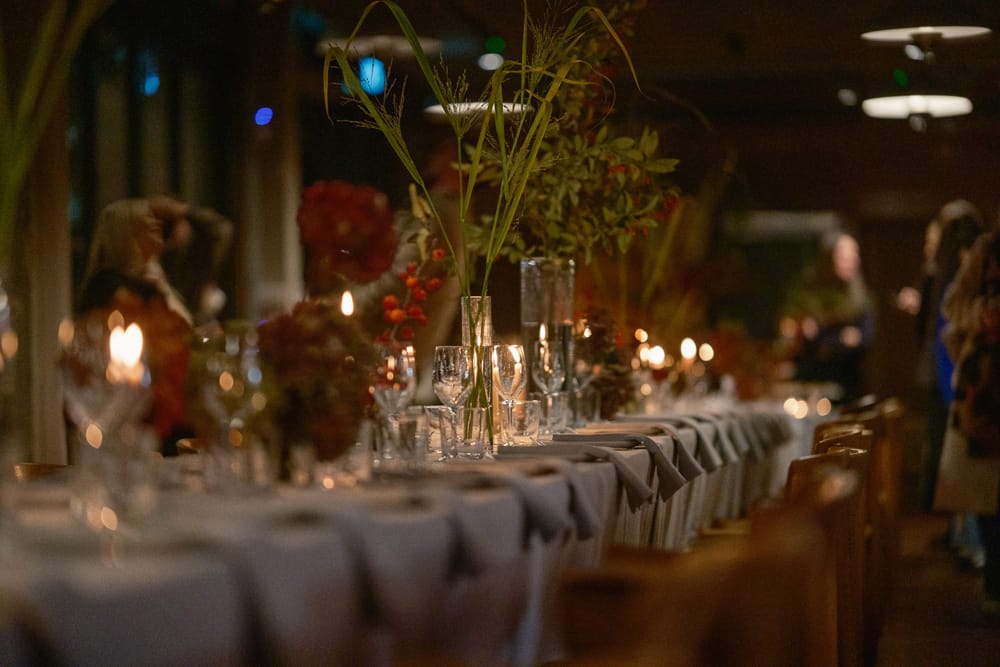Toklas can accommodate events with up to 300 guests, offering a low-key, brasserie-style feel. The dining area features a unique open kitchen grill that runs along the main dining room, adding a touch of culinary excitement to the event. The space is flexible, with the option to extend into the bar room or be closed off as needed. The windowed perimeter opens onto the expansive garden terrace, perfect for outdoor drinks and dining. A retractable awning provides shade and shelter, ensuring comfort in any weather.