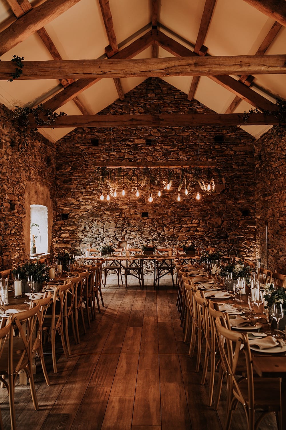 WOW, there are no words! We booked the TH for our wedding whilst it was a building site, why you say? Because we had every faith in Cheryl’s vision of the final product! We 100% made the right decision! We had originally booked to have our ceremony in the boat house on lake Windermere but on the morning of the wedding it was raining and I mean RAINING! Cheryl asked me due to this and the walk down to the boathouse would we like our ceremony in the barn. We are truly thankful of this offer as it ended up being perfect! Even thinking about it now makes me emotional at how amazing it was. The stone walls of the building and adjoining to our reception area along with the gorgeous ambience of the lighting made it truly romantic! Even though the rain was non stop all day we feel it added to the vibe of our boho relaxed wedding and the photos are truly stunning.
