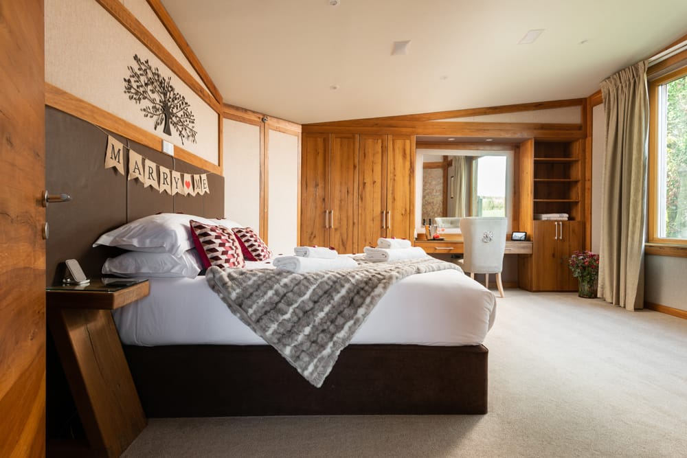 Tree Top Escape offers luxurious accommodation for the wedding couple and two others. With two ensuite bedrooms, modern features, and jaw-dropping views, it is the perfect place to relax and start married life together.