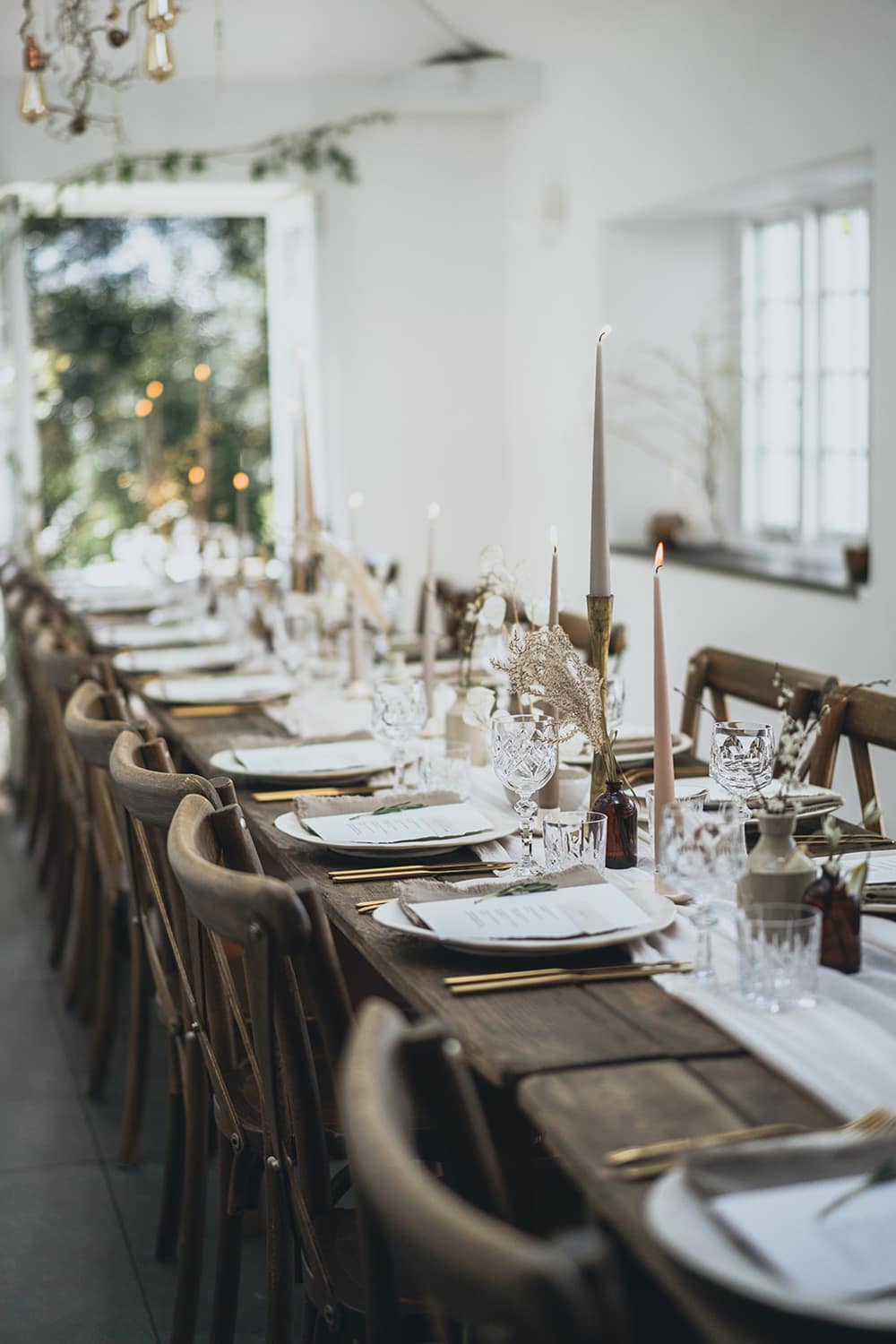 South-facing terraces provide the perfect backdrop for post-ceremony drinks and canapés. In summer, gardens come alive with croquet and table tennis, while ivy-covered gateways and shaded paths create perfect photo opportunities. For the winter months, The Drawing Room offers a warm and inviting space illuminated by candlelight.