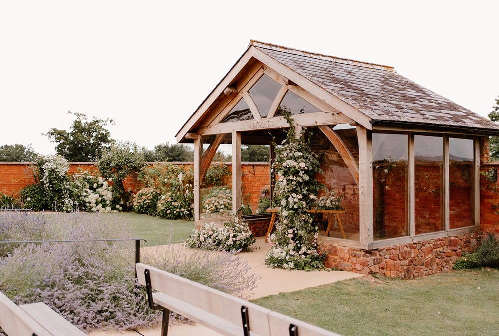 Registered for civil ceremonies, couples can choose to exchange vows beneath the beautifully hand-crafted oak arbour within the Walled Garden or inside The Cider Barn, which boasts romantic lighting, soaring oak trusses, and a polished concrete floor. Both locations create an intimate atmosphere for a memorable wedding ceremony.