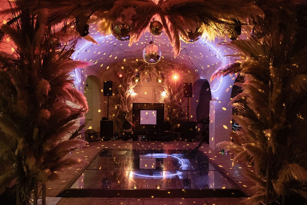 Receptions at Villa Almanita can accommodate up to 250 guests, with a variety of versatile spaces for cocktail hours, meals, and entertainment. The large pool, tree-lined courtyard, and expansive gardens provide the perfect backdrop for a lively celebration. There are no restrictions on sound curfew, allowing guests to celebrate into the night.