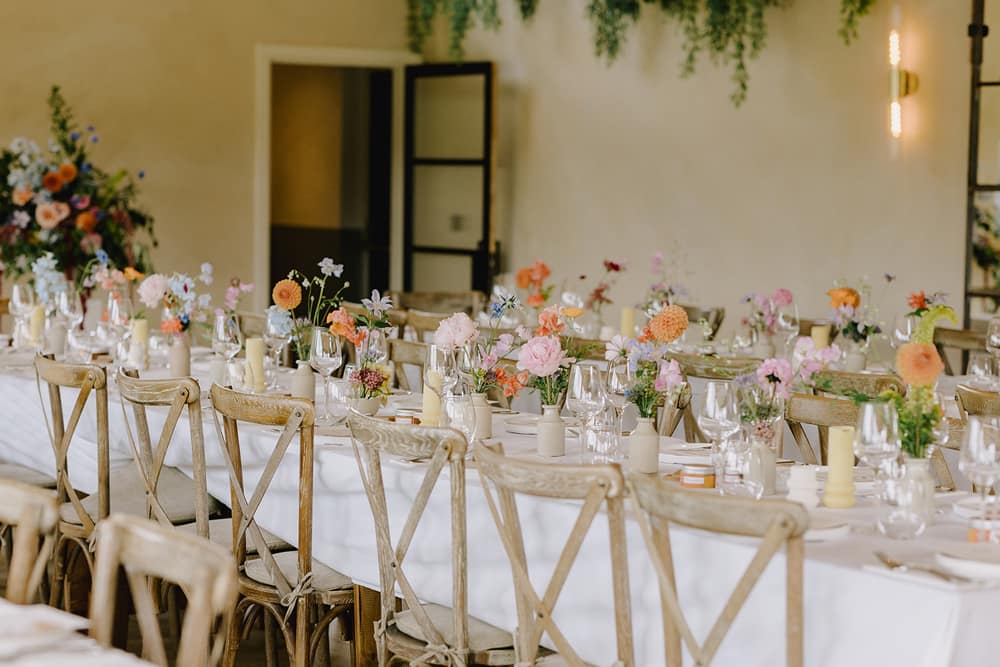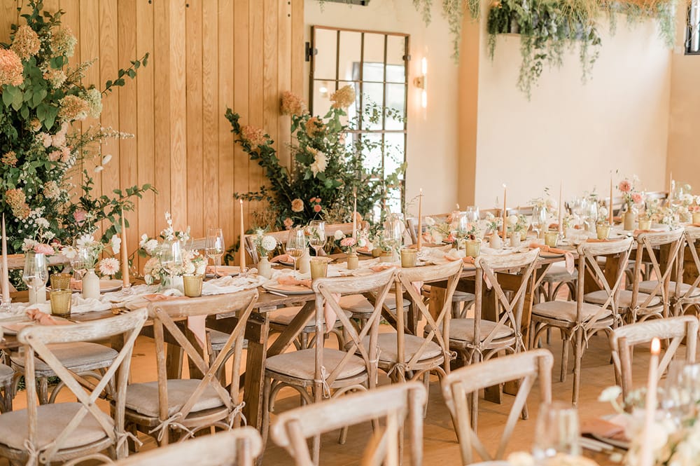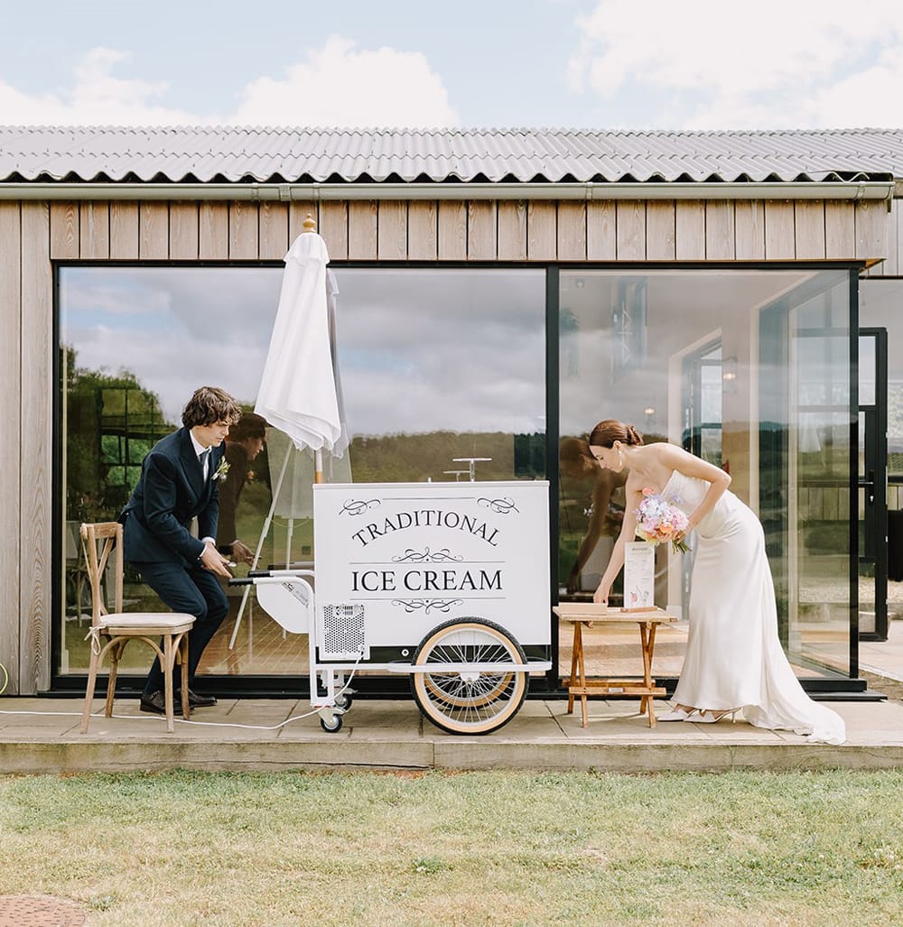 The main wedding barn features minimal, Scandi-style interiors that are an idyllic neutral backdrop for bespoke touches, such as seasonal flower arrangements and tablescapes. Bring in caterers for a classic wedding breakfast, or hire a pizza truck for a relaxed garden feast.