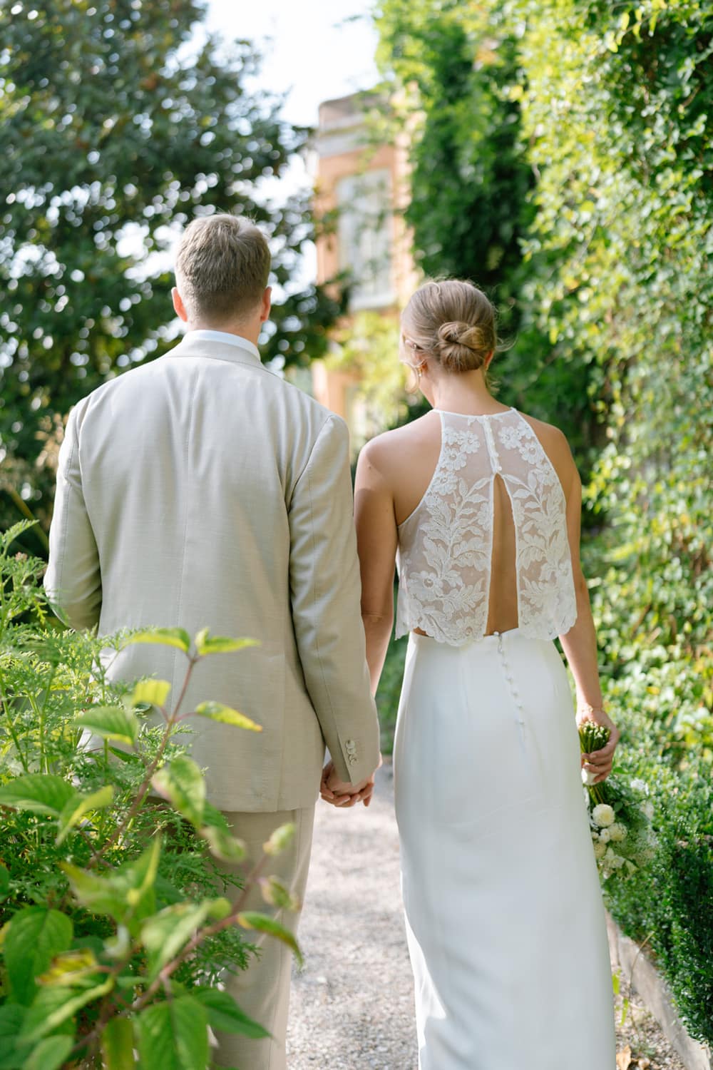 Civil and humanist ceremonies can be held on site in the grand music room, a light-filled space with oak parquet flooring, doric columns, expansive ceilings and turn of the 20th century style. Traditionalists might prefer a local church ceremony, before returning for the reception. Couples will also have access to the Edenic grounds and may choose instead to exchange vows in the orchard or walled garden