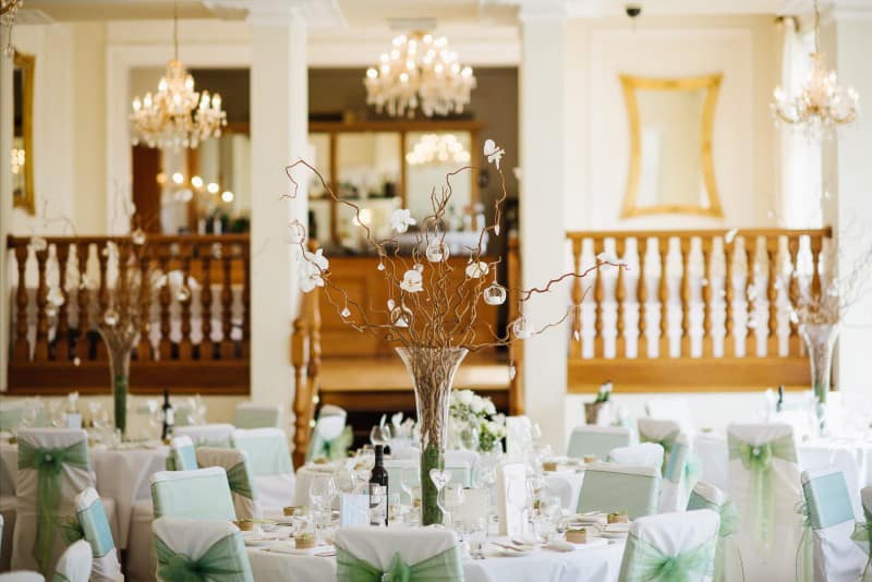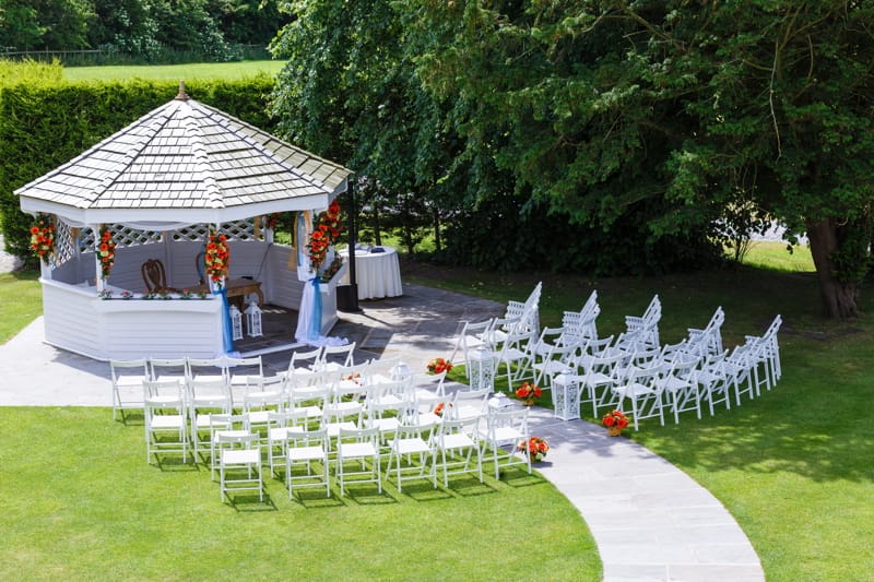 The house is licensed for ceremonies both inside and out, in the light and airy ballroom with its floor-to-ceiling windows or outside on the lawn under the romantic ceremony pagoda.