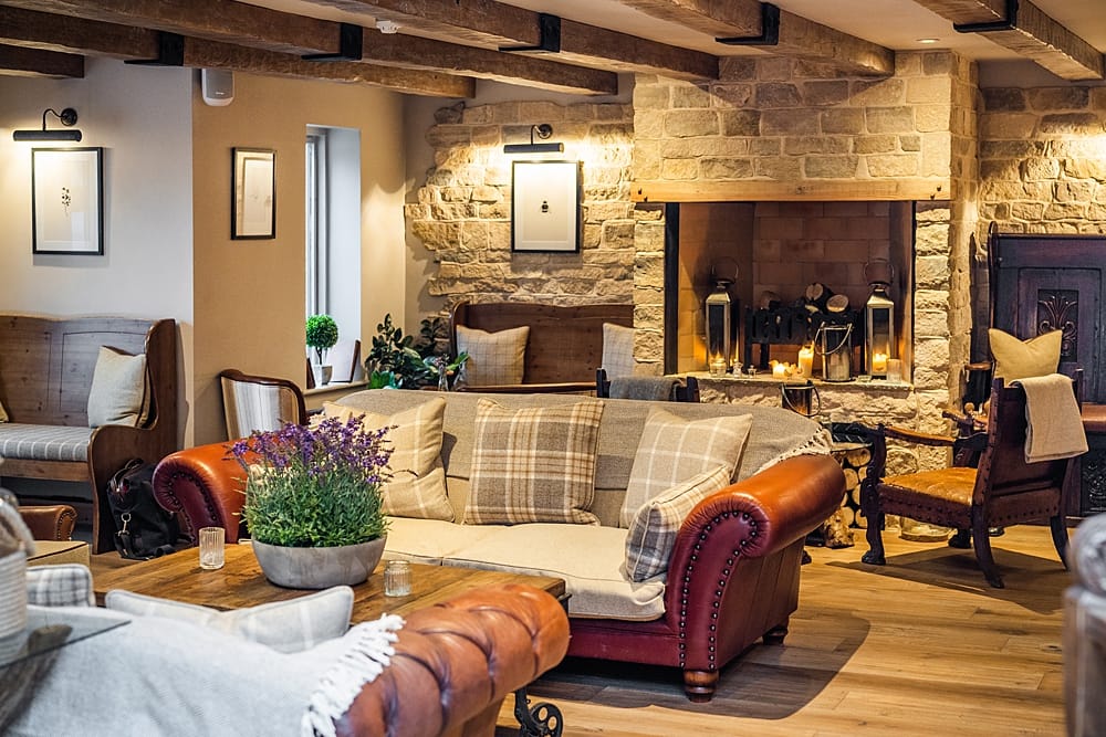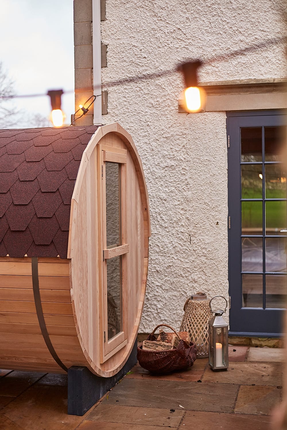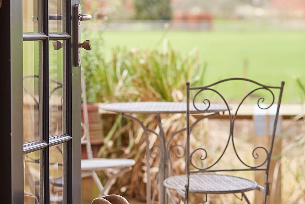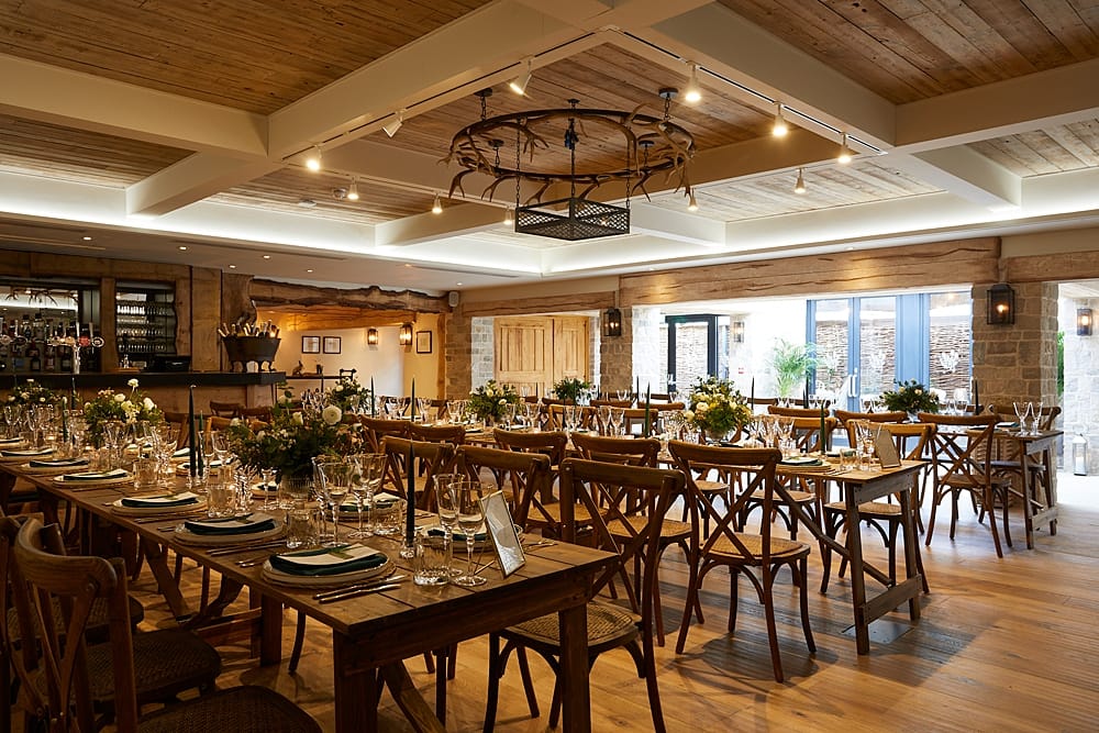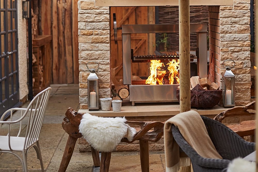 Reception drinks on a sunny day, or under the stars, can be enjoyed in (almost) all seasons on our covered terrace with a wood-burning fire.