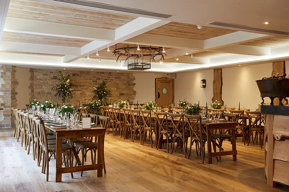 Exposed Cotswolds stone and natural wood floors are blended with soft textures to create a stylish space that can be set up in several ways. Naturally floodlit from the skylight above and leading out onto a private alfresco courtyard, the suite also benefits from breakout spaces with an adjoining lounge and the Secret Garden Room.