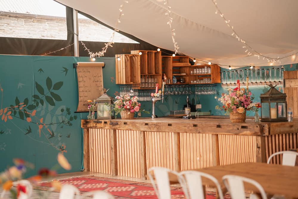 Nestled within the barn walls is their huge Safari tent, offering a blank canvas that allows you to make your special day your own with space for 120 guests for sit-down meals and 150 guests standing in a bar or dance area. There is also a spectacular 16ft solid oak bar.