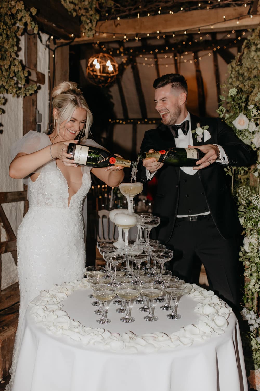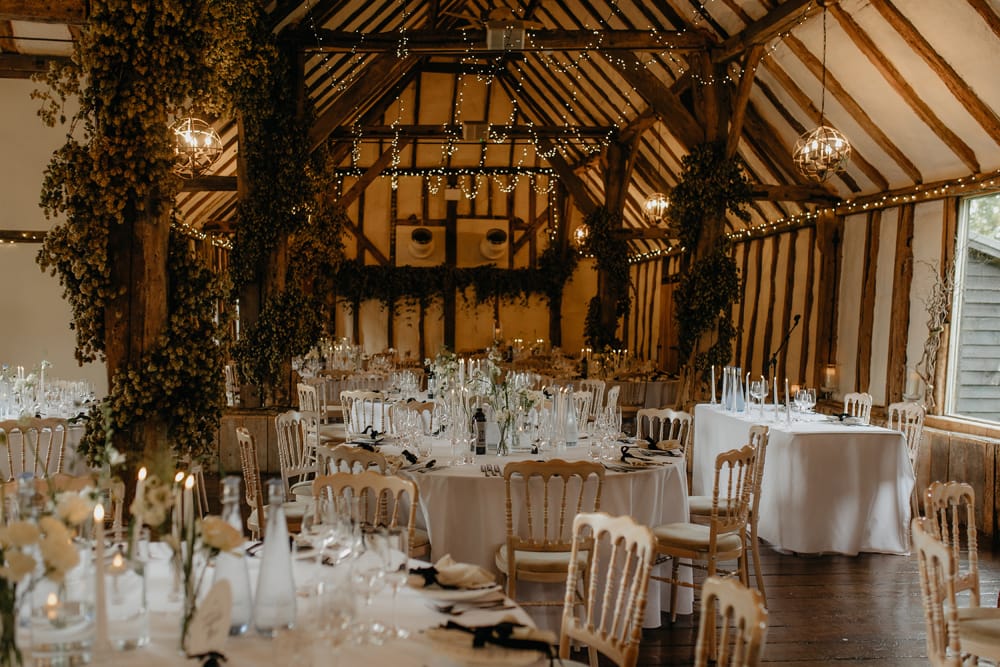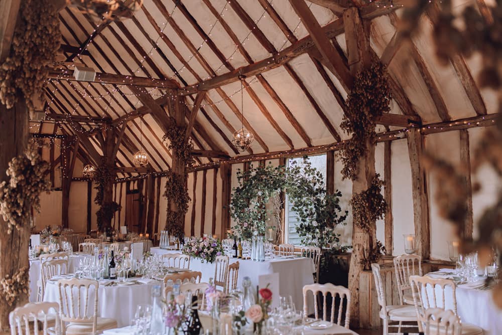 Winters Barns, located just outside Canterbury in the heart of the Kent countryside, offers a unique blend of rustic charm and modern elegance. The venue, a collection of historic barns from the 16th century and available for exclusive use, has been meticulously restored to preserve its character while incorporating contemporary comforts. Its charming courtyard, exposed brickwork, and rustic beams create an inviting atmosphere, making it the perfect backdrop for a memorable wedding.