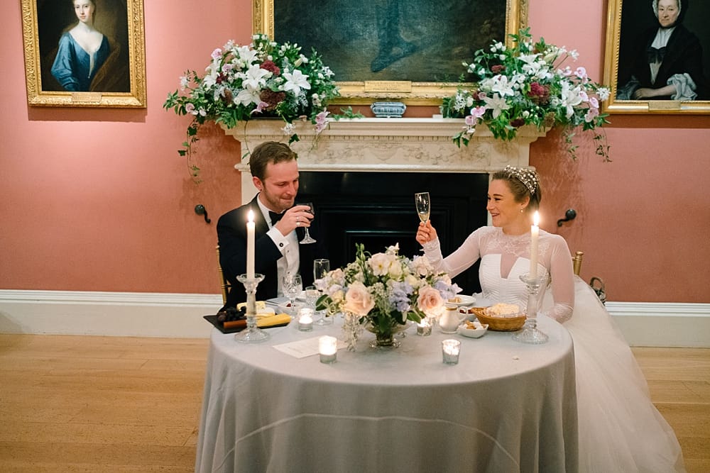 My husband and I got married at Winton Castle in February 2020, it was the most special day and weekend we could have imagined! The castle is such a beautiful venue, the room layout flows perfectly and it felt both grand and homely with the fires lit. Every room is beautiful – so there was no need to decorate them much further; we chose to add some table decorations and that’s it.