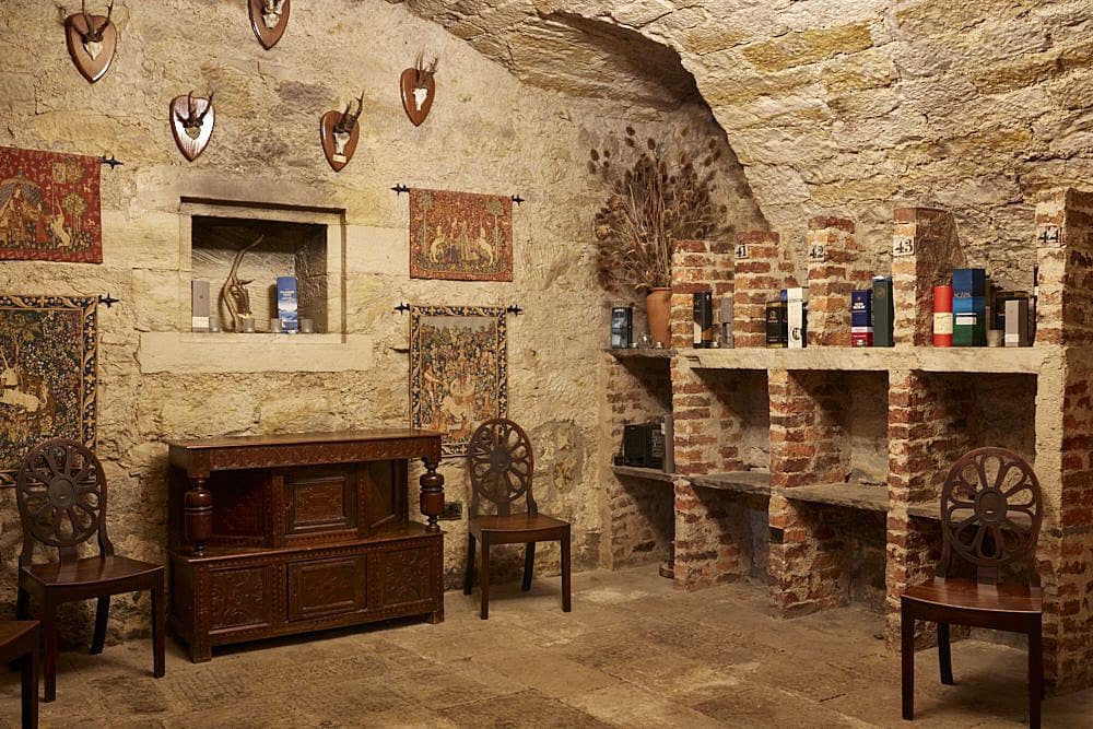 The grand castle entrance welcomes guests with a roaring fire, leading to the Octagon, where a drinks reception can be served, offering a magnificent cupola that provides a view of the castle’s roofscape and chimneys. The Library provides a cosy sitting room to enjoy a dram or two and the Cabinet room, evening buffet and breakfast setting, or children’s play area.