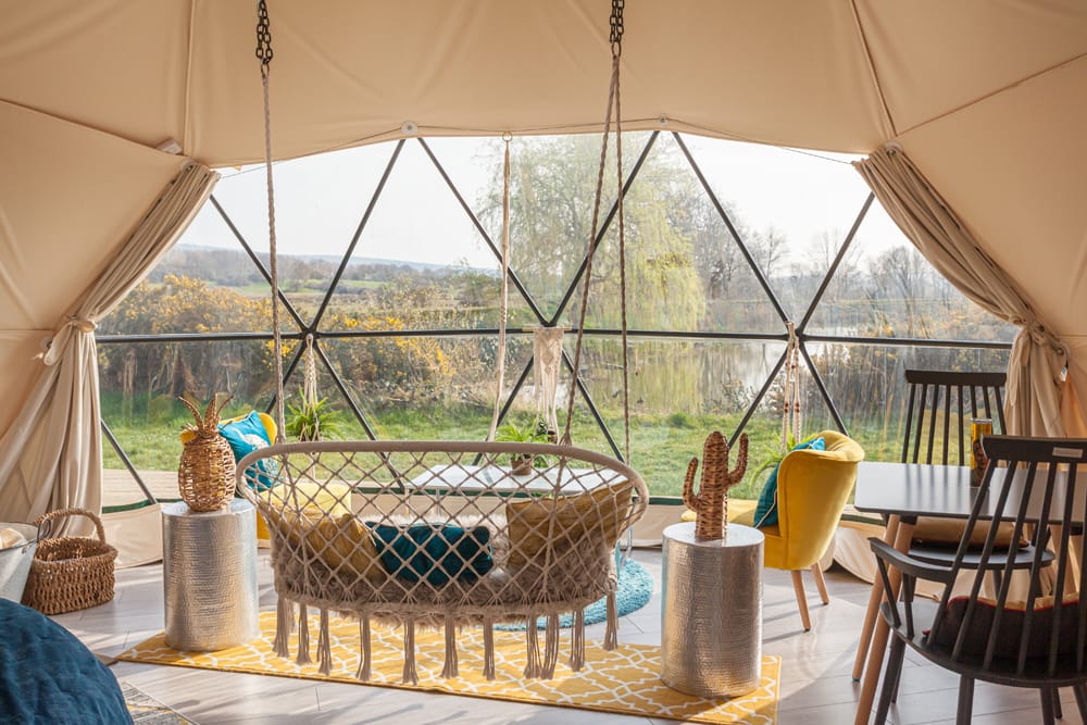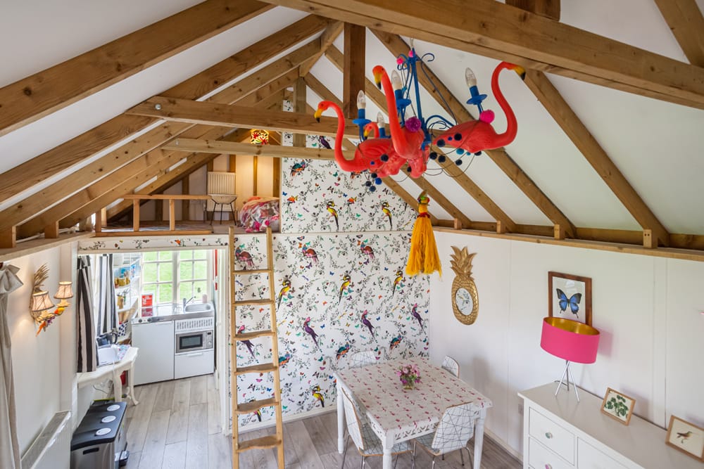 On-site accommodation has been carefully selected for its style and comfort, accommodating up to 20 guests as part of the hire. Each option has its own unique look, from the wooden-beamed Lake House to the playful Tiny House, complete with a flamingo chandelier.
