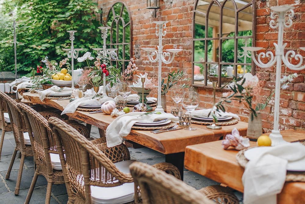 Your drinks and canapés reception will be held within the grounds on beautiful spring and summer days. Afterwards, guests will then be invited into the barn for your wedding breakfast and evening reception.