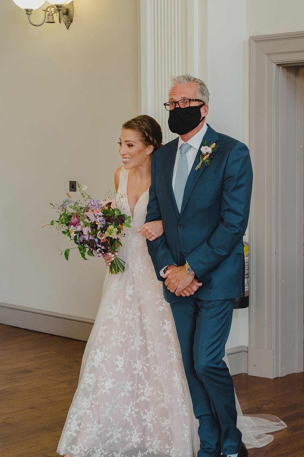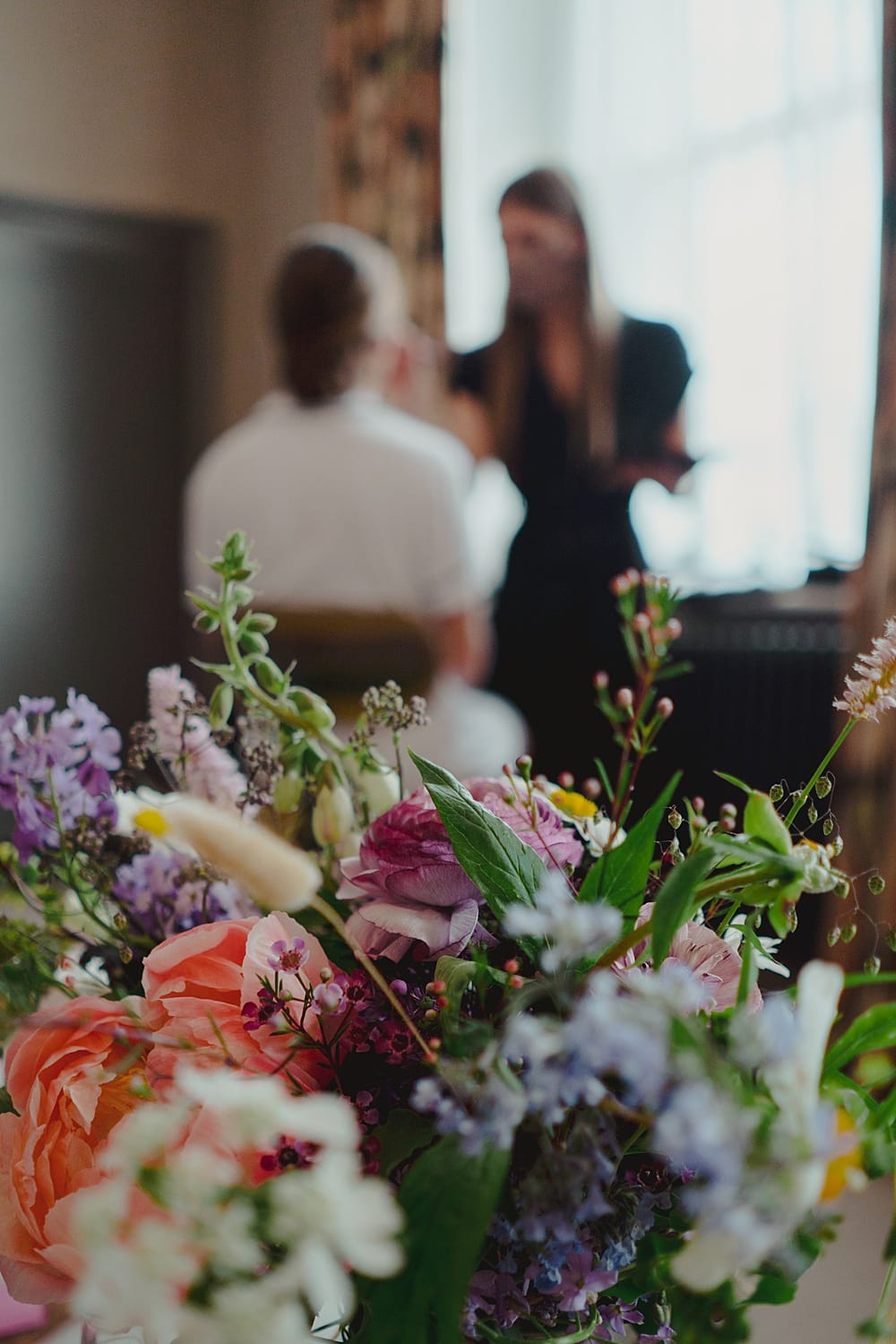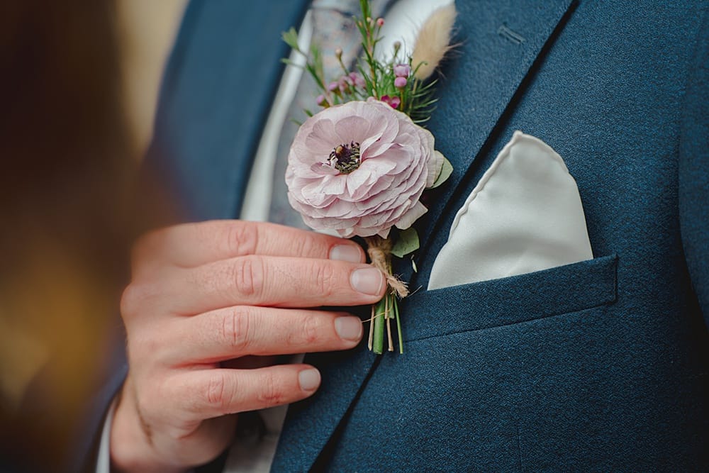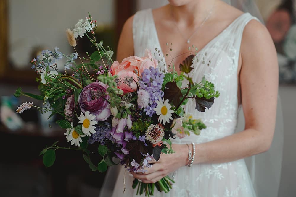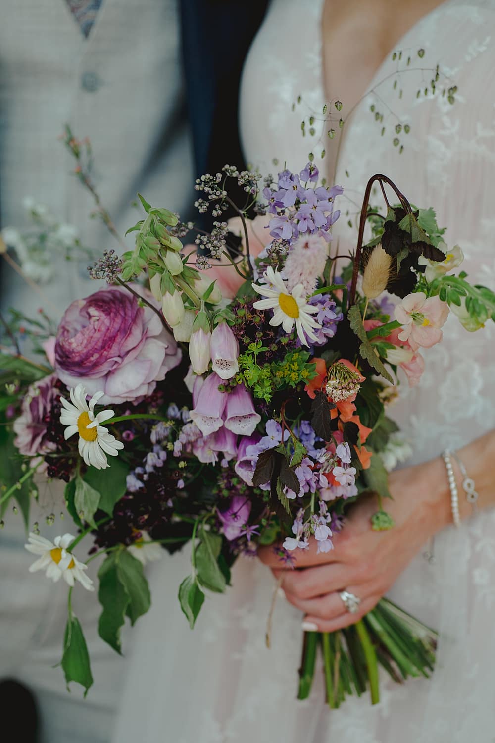 Our florist was Lottie from Wild Thoughts Floristry. She is actually my cousin’s friend and our original wedding date was going to be her first wedding post her florist training course! Thankfully she stayed with us through all our date changes and we couldn’t have asked for better. She listened to what we wanted and delivered on it all. I wanted an unstructured bouquet with lots of green foliage. The buttonholes then took one of the purple flowers from the bouquet with some green foliage and a hessian string wrapped around the bottom.