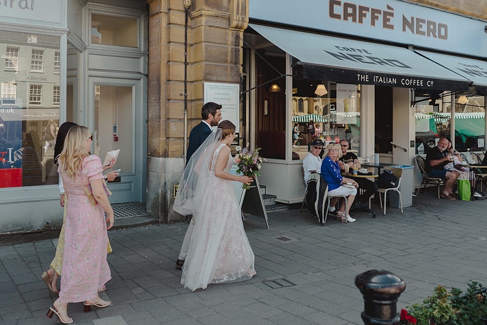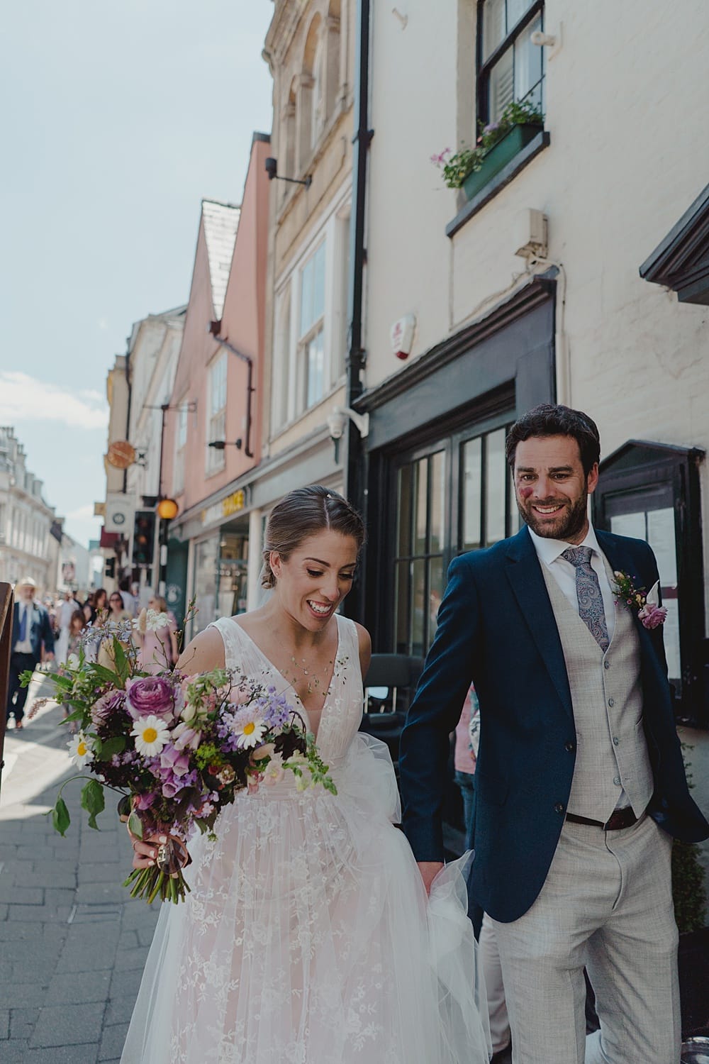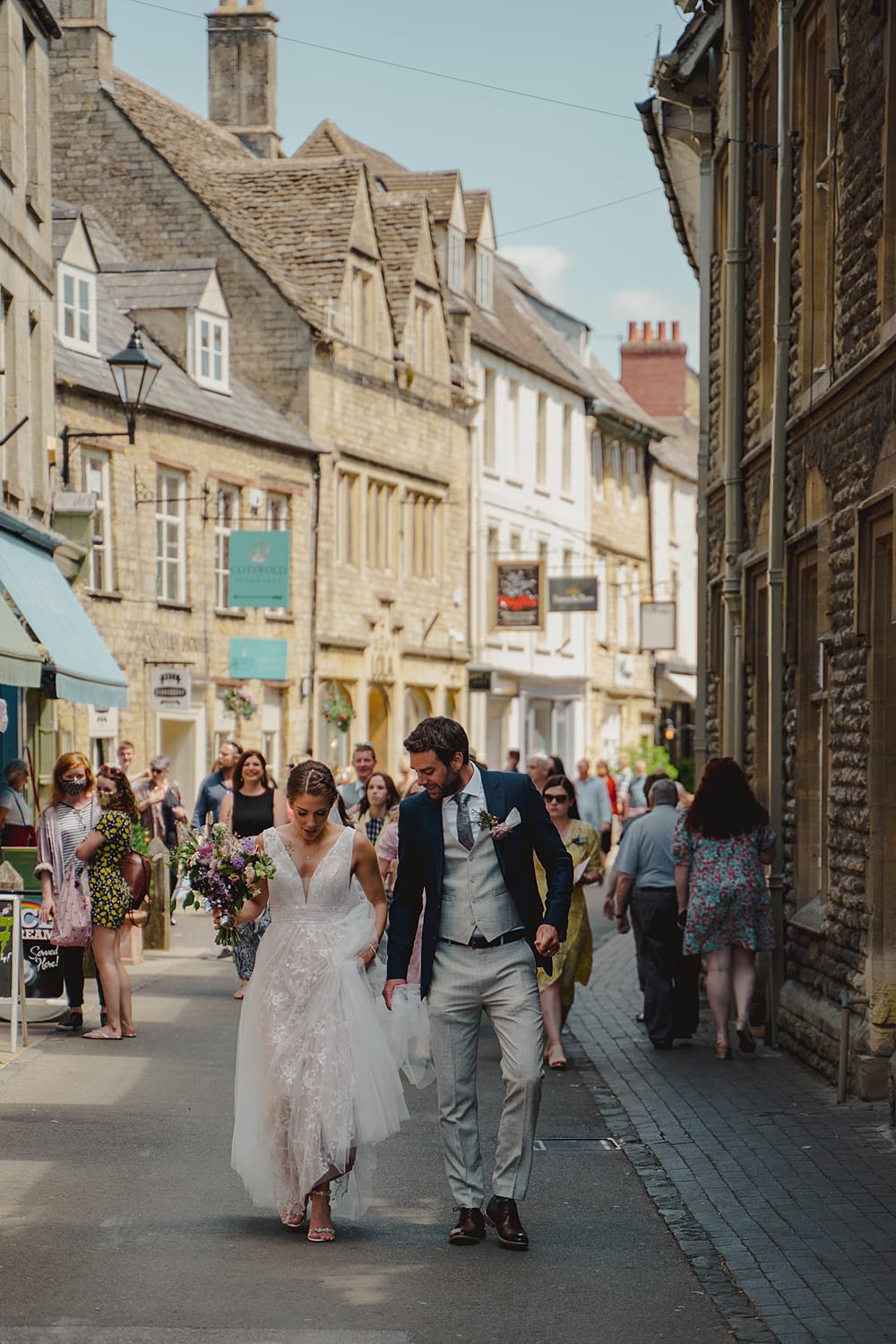 Walking through Cirencester to the park. It was a great way to start our married life and felt like we took over Cirencester briefly. It was so lovely with people in Cirencester wishing us congratulations, it made us feel very special!