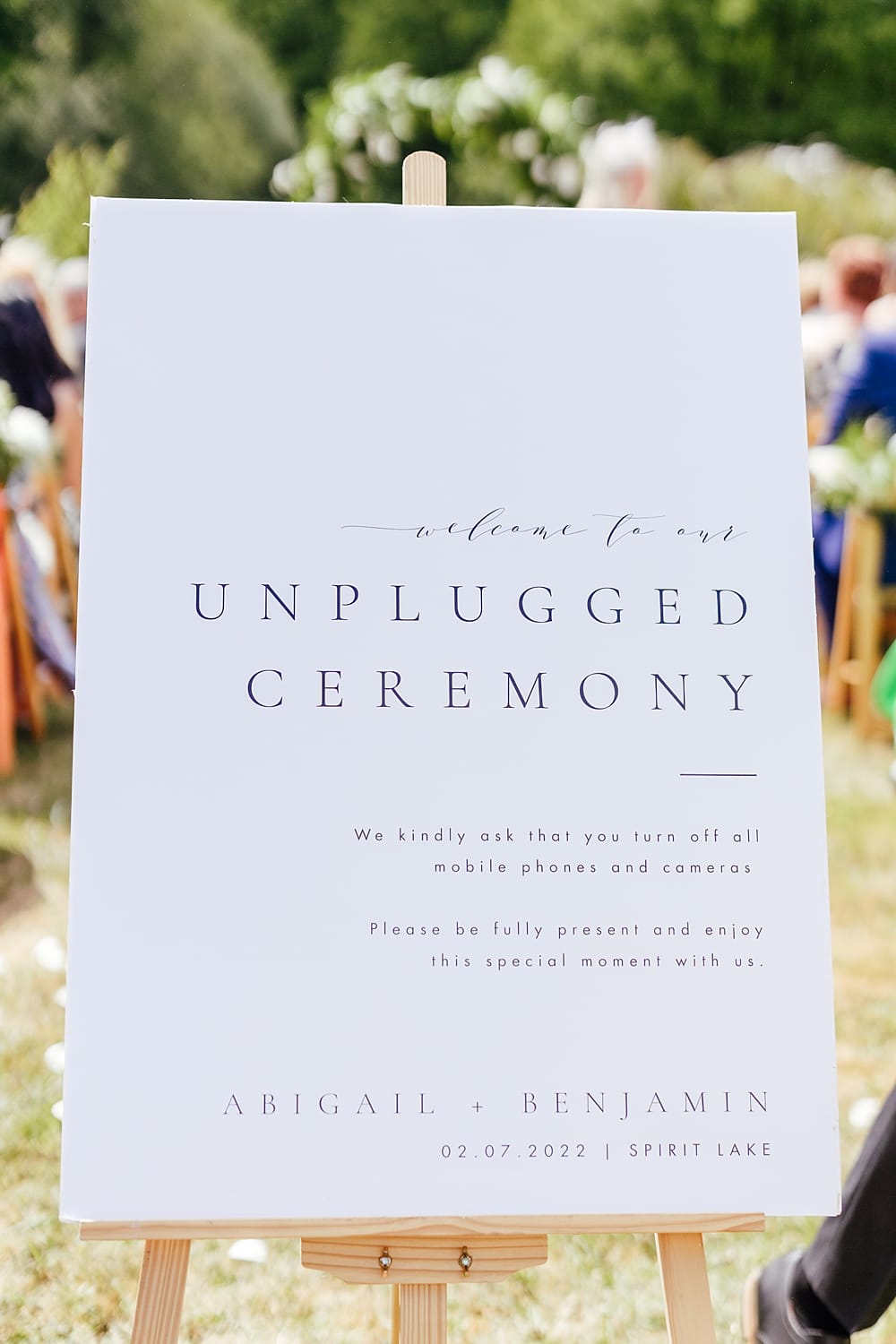 Abi says, “Our wedding day at Spirit Lake was absolutely perfect. The first decision we made while planning was to have an outdoor venue, so that we had total flexibility with vendors and other elements of the day. We loved that we were able to customize every aspect of the day and we are so grateful to all our vendors and family/friends who worked to make it happen!