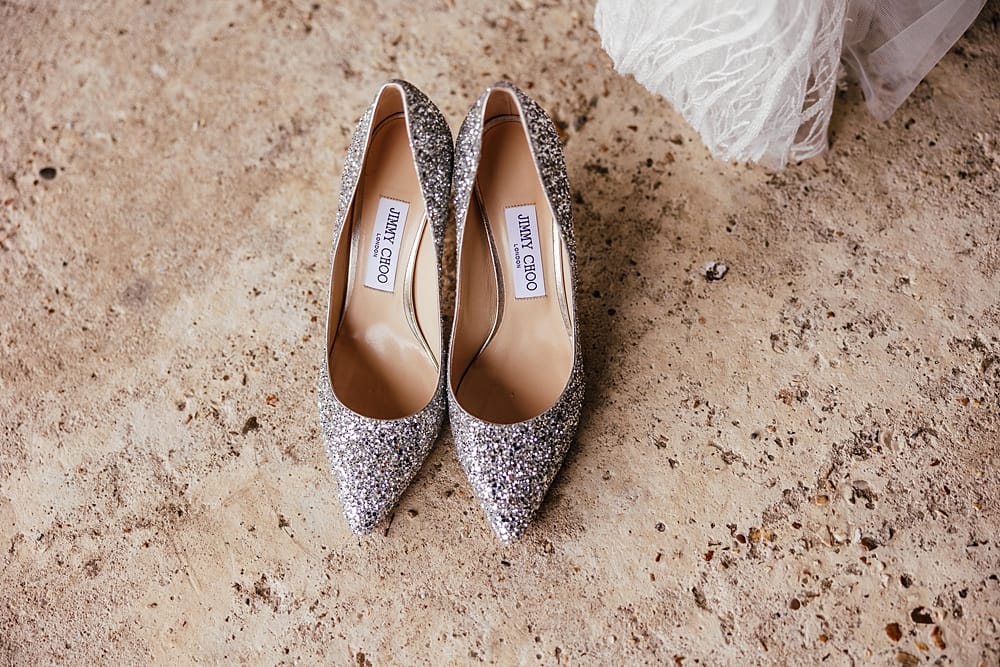 Abi wore a beautiful, low-backed, beaded lace gown from Made With Love with a floor-length veil. And let’s not forget the silver glitter Jimmy Choos!