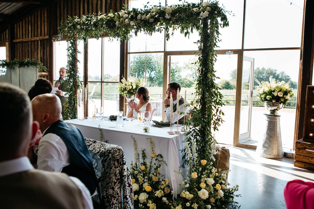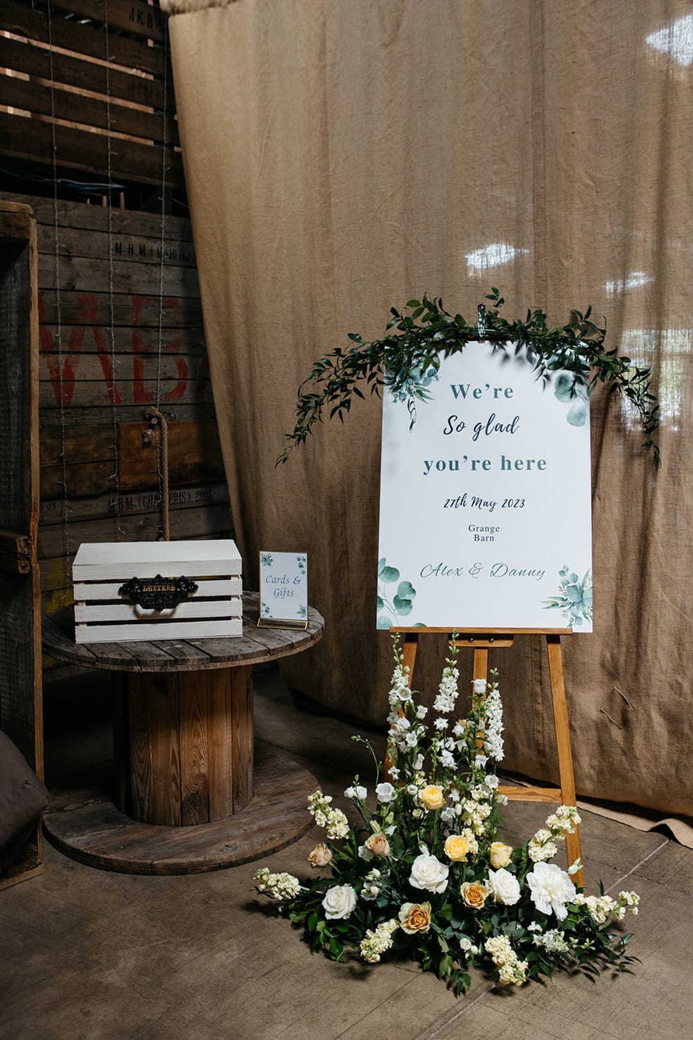 My mum and I have had a flower shop for over 20 years, Flower House, Wirral, so we were thrilled to go out with our floral arrangements. The barn allowed us to do all the work on-site, which was important as we wanted to be there for the setup and wedding preparations.
