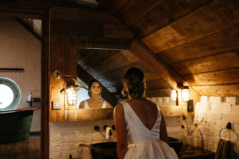 Our main selling point was that they only have one wedding per week, meaning we could arrive early on Friday to make all of our floral arrangements and set up, and then we didn’t have to check out until Sunday. Also, the Loft they have onsite was the perfect place for getting ready on the morning of the wedding, a gorgeous space with huge light-up mirrors for hair and makeup. We stayed at the Loft on the Friday and Saturday night, and it was such a luxurious and cosy room with a beautiful big copper bathtub!