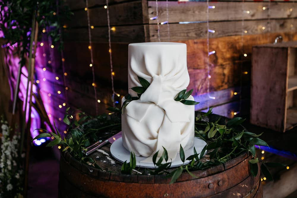 Samuel James Events provided the catering, and the food was wonderful. Everyone commented on how delicious it was. The cake, made by Natalie’s Cakes and Bakes, was a simple ivory-draped icing cake with foliage decorations. The top tier was carrot-flavoured, and the bottom tier was lemon-flavoured.